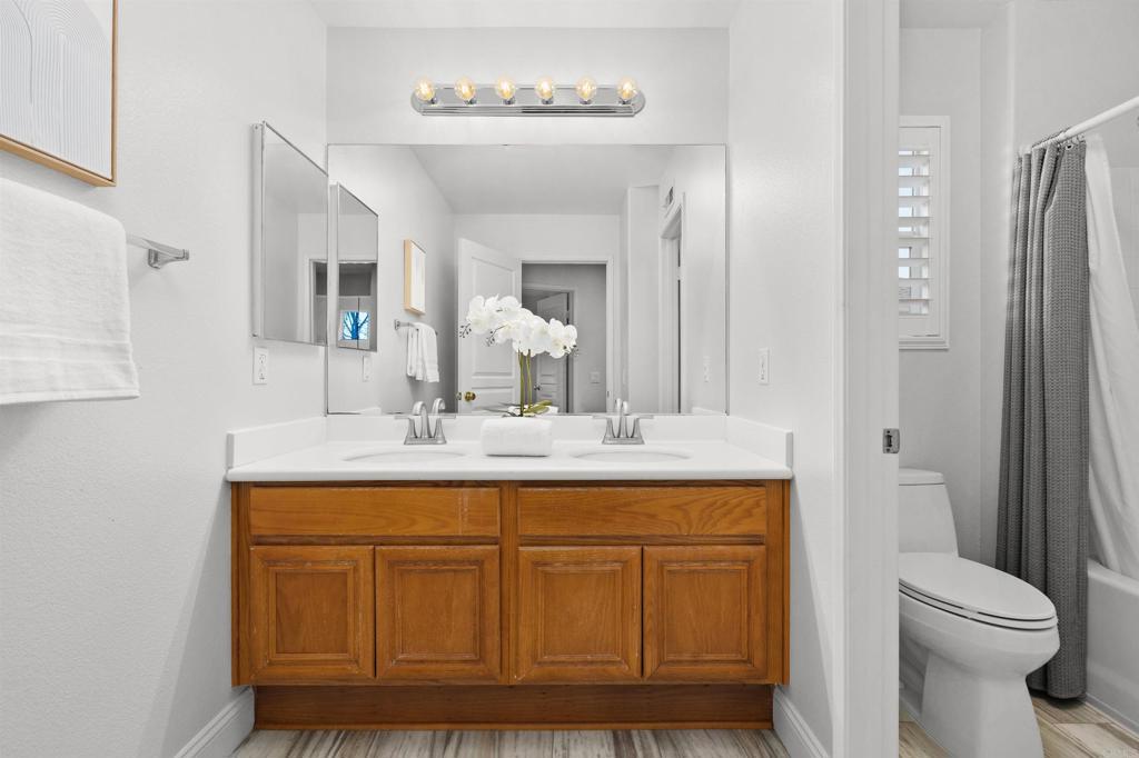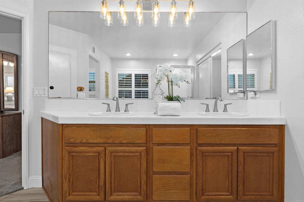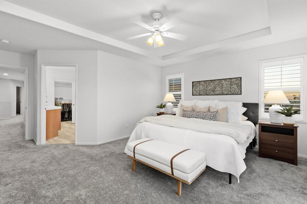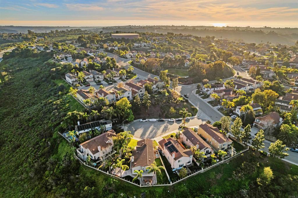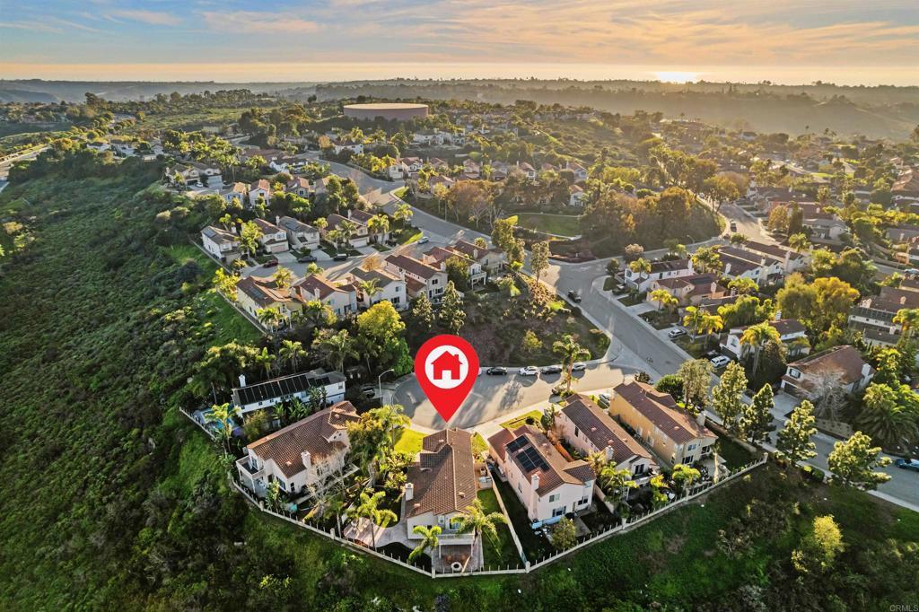 Welcome to 3712 Ridge Court in the prestigious Calavera Hills community of Carlsbad. Located at the end of a quiet cul-de-sac with homes on one side and a landscaped hillside on the other, this property offers privacy and openness. Enjoy expansive 180-degree northeast-facing views of Mount Calavera, Palomar Mountain, surrounding hills, vibrant sunrises, sparkling city lights, and multiple Fourth of July fireworks displays. This 4-bedroom, 3 full-bath home offers 2,287 sq ft of living space. Located on a pie-shaped lot with tropical landscaping. Soaring ceilings and abundant natural light enhance the open-concept layout. The main-level fourth bedroom is currently used as an office, providing flexibility for guests or remote work. Features include luxury vinyl plank flooring downstairs, carpet upstairs, designer tile in baths and laundry, custom plantation shutters throughout, fresh interior paint, updated chandeliers, and a remodeled gas fireplace. Additional amenities include central heating and air conditioning, ethernet/security/coax wiring, laundry room with sink, built-in garage storage, and a new Wi-Fi enabled garage door. Conveniently located near trails, beaches, shopping, dining, and LEGOLAND California, with easy access to I-5 and Hwy 78. Buyer and buyer’s agent to verify all information prior to close of escrow.