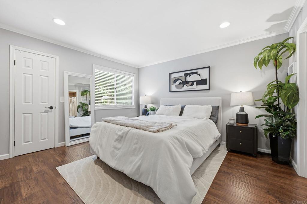 Beautifully maintained upper-level unit with dual primary suites in the highly desirable, gated community of La Costa Hills. This light and bright home features an open floor plan enhanced by tasteful upgrades throughout, creating a welcoming sense of comfort and style. The chef’s kitchen offers granite countertops, stainless steel appliances, rich cabinetry, and a walk-in pantry—perfect for both everyday living and entertaining. Both bathrooms have been thoughtfully updated with travertine flooring and elegant shower surrounds. Additional designer touches include wood flooring, crown molding, and recessed lighting throughout. Enjoy the convenience of an in-unit washer and dryer, along with a one-car attached garage plus an additional assigned parking space. Ideally located adjacent to a peaceful grassy area, this truly turnkey home offers both privacy and charm. La Costa Hills residents enjoy resort-style amenities including a sparkling pool and spa, tennis courts, fitness center, sauna, clubhouse, and more—completing this exceptional opportunity.