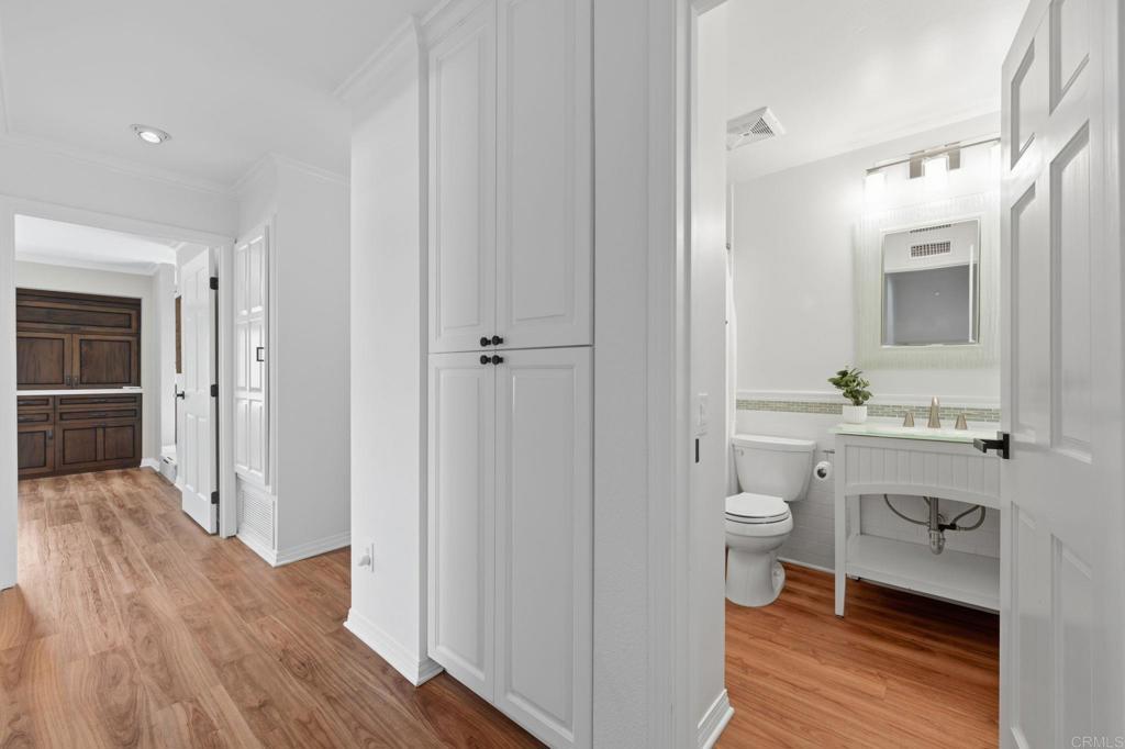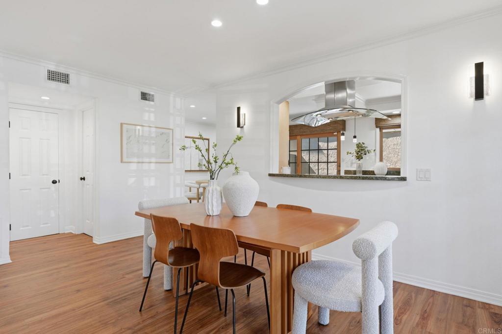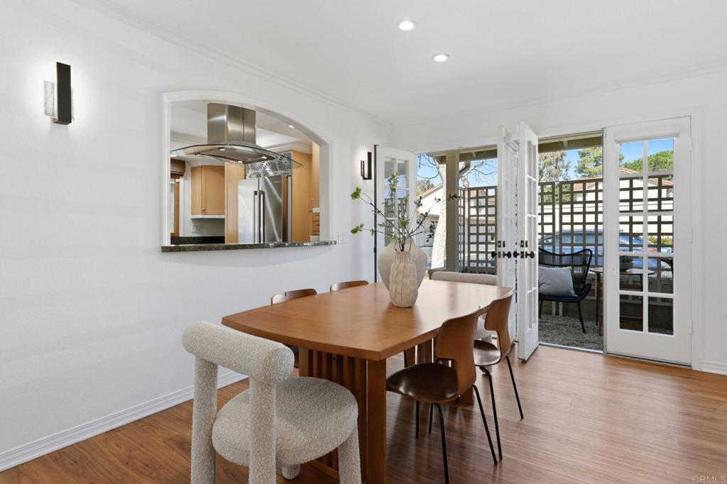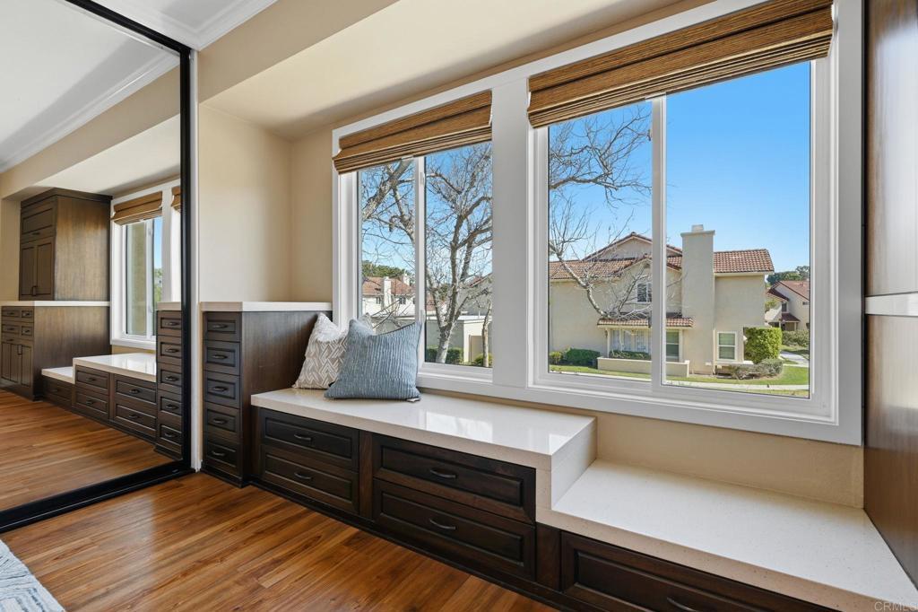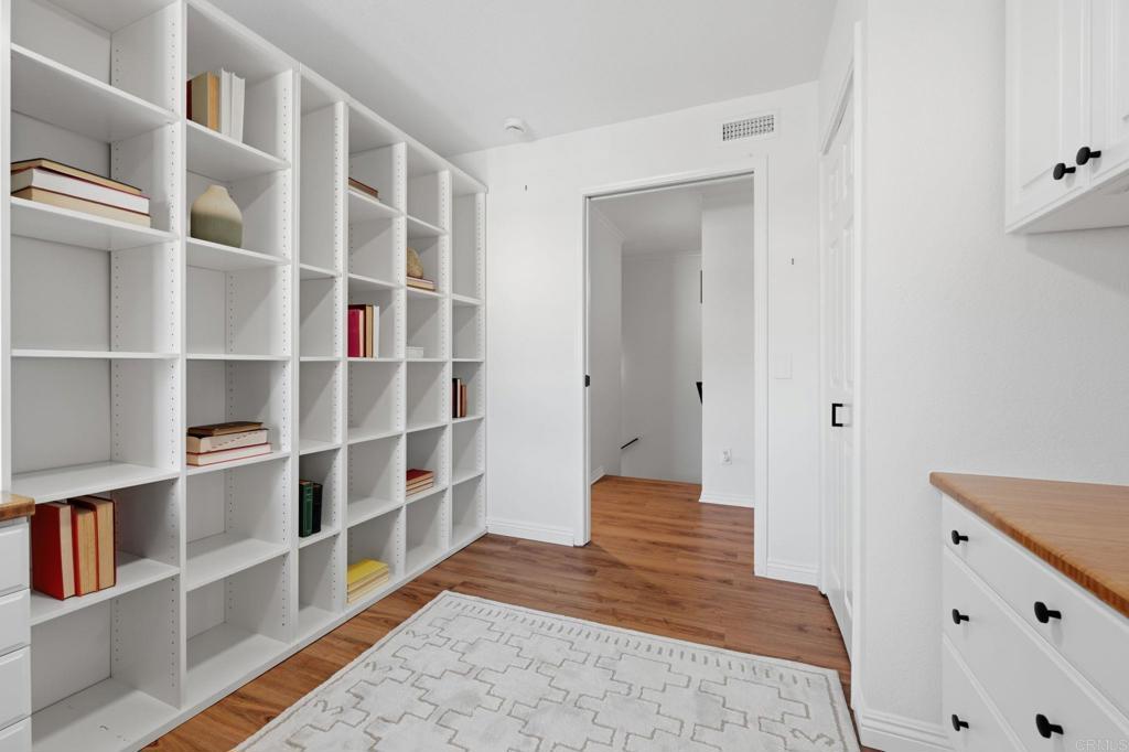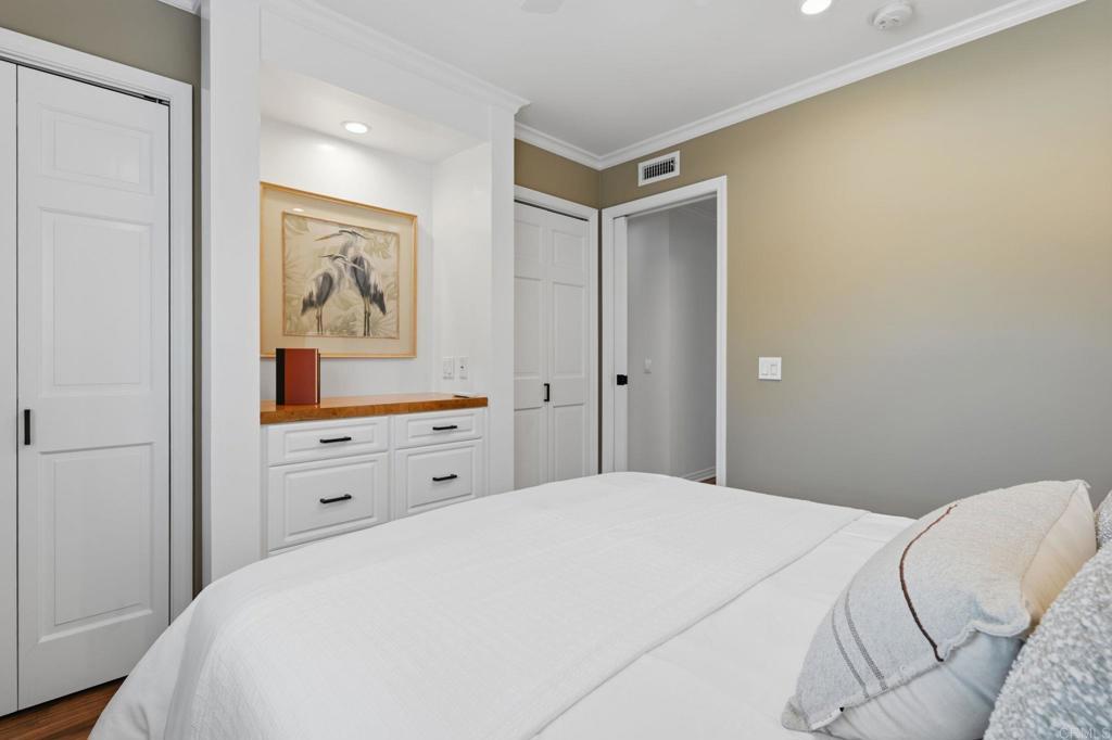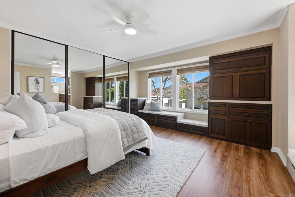 Welcome to the largest floor plan in Seagate Village — a rare corner-unit townhome in the heart of Encinitas offering exceptional space, privacy, and an abundance of natural light. This light-filled end unit stands out with its expansive layout and quiet location within the community. Thoughtfully upgraded throughout, the home features a stunning designer kitchen with custom cabinetry and newer appliances, including a Bosch refrigerator, Bosch dishwasher with water softener, KitchenAid wall oven, and newer water heater — all replaced within the past three years. Luxury vinyl plank flooring runs throughout the home, complemented by custom window treatments and upgraded lighting. Interior designer touches elevate every space, while custom built-ins and generous storage solutions provide both beauty and functionality. The versatile layout includes four spacious bedrooms one of which is set up as an impressive dual home office designed to comfortably accommodate two — ideal for remote work or creative pursuits. Step outside to a peaceful backyard retreat complete with a deck and soothing fountain — a private setting perfect for relaxing or entertaining. A two-car garage adds convenience and additional storage. Residents of Seagate Village enjoy resort-style amenities including a pool and spa, tennis courts, pickleball, dog park, tot lot, and volleyball court — all within a friendly, welcoming community. The HOA covers landscaping, exterior walls, roof, and termite maintenance for added peace of mind. Ideally located within a short distance to shopping and dining and Flora Vista Elementary School. Within the highly regarded Encinitas Union School District and San Dieguito School District. this home offers the perfect blend of space, style, and convenience in one of North County’s most desirable coastal communities.