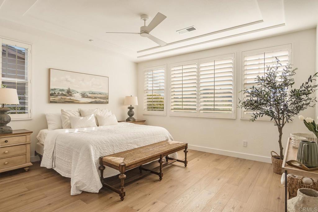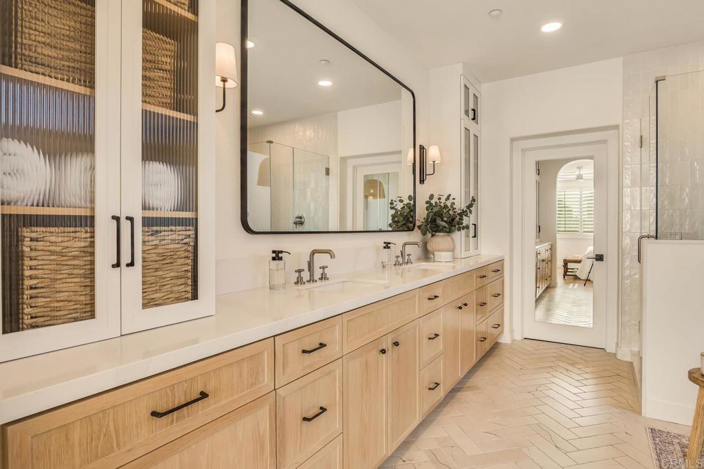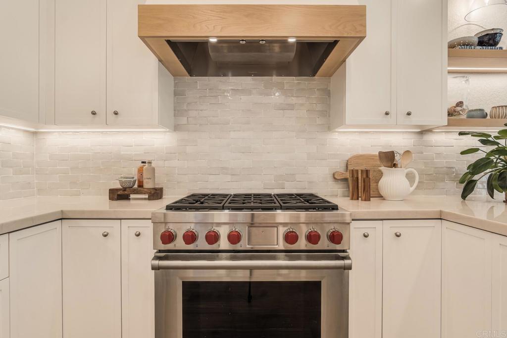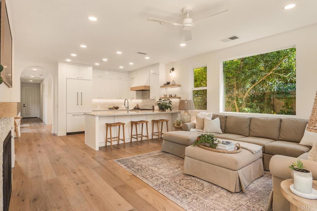 Located in Encinitas Ranch, just minutes from the coast, golf, and neighborhood trails, this home balances thoughtful design with everyday livability. The backyard is designed for year-round use, with a built-in fireplace, overhead heaters, and spa creating a comfortable setting for evenings at home. The family room flows naturally from the kitchen, anchored by a fireplace with custom built-ins that balance texture and simplicity. Expansive windows draw in natural light while a glass door opens to the backyard creating an easy indoor-outdoor connection. The result is a space that feels open, welcoming, and perfectly suited for gathering with family or hosting friends. At the heart of the kitchen, a statement Wolf six-burner range is framed by artisan tile and a custom wood hood, while the built-in Sub-Zero refrigerator integrates beautifully into the surrounding cabinetry. Quartz countertops extend across a generous island with seating, offering ample space for meal prep, casual dining, or conversation. The primary suite is designed as a private retreat, offering generous scale, layered ceiling detail, and abundant natural light. The space feels open, airy, and quietly refined, with a seamless flow into the spa-like primary bath featuring an expansive dual-sink vanity with extensive storage, a separate soaking tub, and a walk-in shower. Completing the home are three additional bedrooms, each with its own ensuite bathroom, including an entry level bedroom and full bathroom. A Tesla Powerwall in the garage adds a practical layer of energy efficiency. Call to schedule a private showing.