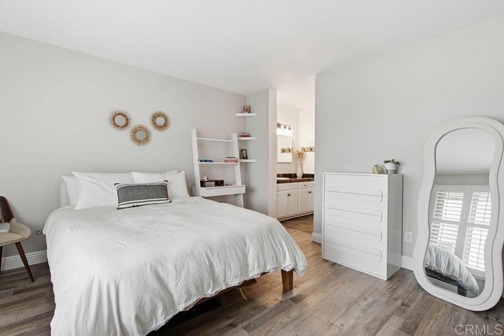 Experience elevated living in this exceptional upstairs retreat featuring dual en-suite primary bedrooms, offering both privacy and sophistication. Thoughtfully upgraded with high-end designer finishes, this residence showcases premium luxury vinyl plank flooring, elegant quartz countertops, and sleek stainless steel appliances that complement the modern aesthetic. Custom shutters add timeless charm, while the stylish barn door entry enhances the kitchen’s architectural appeal. The spacious walk-in closet and in-unit laundry provide both comfort and convenience. Unwind on your private patio and take in serene eastern views — the perfect setting for morning coffee or sunset relaxation. Ideally located near premier shopping, the renowned Dove Library, award-winning schools, world-class resorts, championship golf courses, and the sun-drenched beaches of Carlsbad. Residents also enjoy access to a beautifully maintained community pool. A rare opportunity to own a refined coastal retreat in the heart of La Costa.