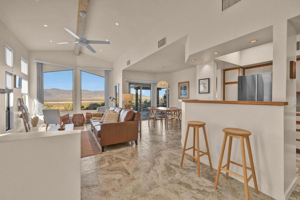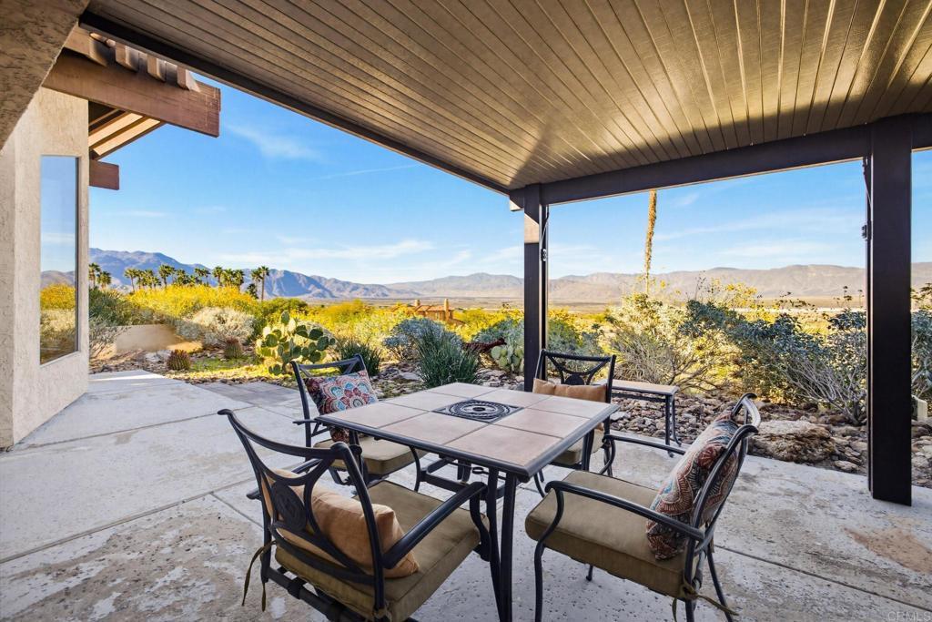 Nestled in the heart of the picturesque desert colony of Borrego Springs, the home is located in California's first International Dark Sky Community and adjacent to California's largest state park ( the Anza-Borrego Desert. Enjoy hiking, biking, golf, tennis & pickleball, watch wildlife (jack rabbits, roadrunners and bighorn sheep), sunrises and sunsets from the backyard patio or just lay back in the pool and gaze at the milky way swirling overhead. Owned solar, tile floors throughout, private courtyard and stunning mountain views.
