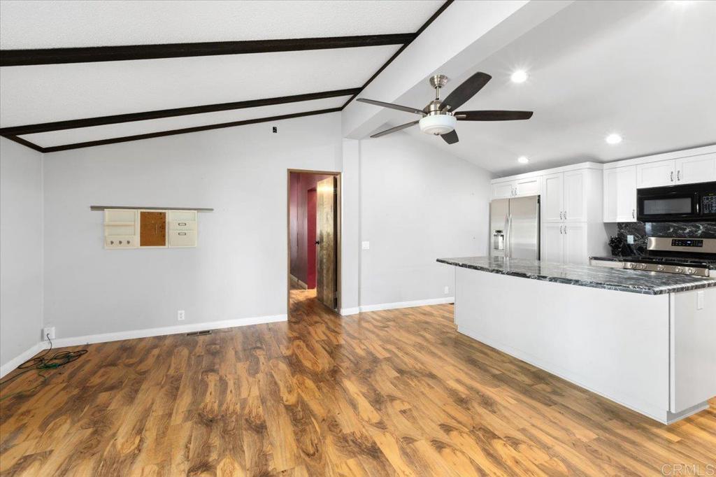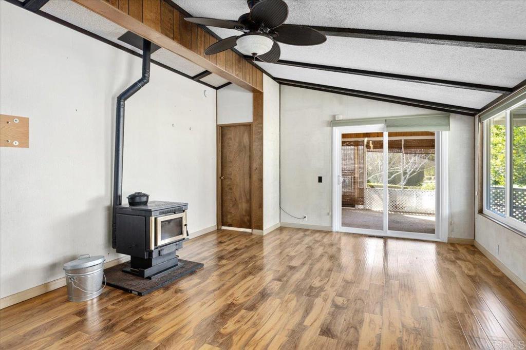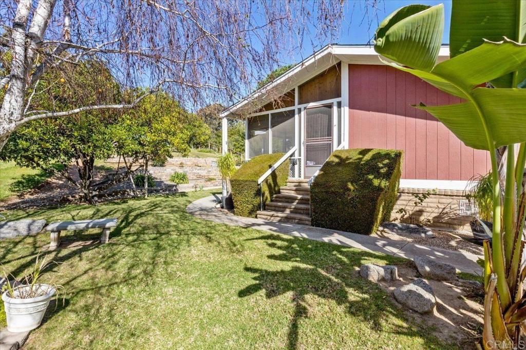 Completely remodeled kitchen + views + FREE golf? Yes, please. Executive SCGA Approved 18-hole Course with no greens fee to residents This beautifully updated 2BR/2BA doublewide in Skyline Ranch Country Club is move-in ready and positioned lengthwise on the lot to capture natural light. The open floorplan with vaulted ceilings and abundant windows creates an airy, spacious feel the moment you walk in. The fully remodeled kitchen is the true centerpiece — modern, fresh, and designed to flow effortlessly into the living and dining areas. Gorgeous new wood flooring runs throughout, complemented by a cozy pellet stove in the living room. Additional upgrades include new roof, newer heat and A/C, newer water heater, newer garbage disposal, wood fencing, retaining wall, and a spacious 9.5' x 12' shed. AND an oversized lot with lots of fruit trees including orange, grapefruit lemon and avocados. Relax on the screened porch, enjoy the peaceful setting, and take advantage of all that Skyline Ranch Country Club offers — clubhouse, pools, and FREE golf in a desirable 55/45 age community. Clean. Updated. Comfortable. This one checks the boxes.
