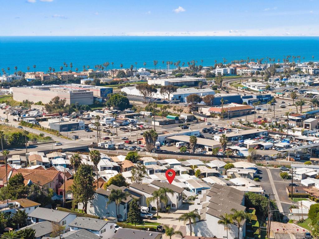 Completely renovated and ideally positioned in highly sought-after South Oceanside west of the 5, this end-unit townhome-style condo offers turnkey living with ocean views just one block from Coast Highway 101 and minutes to Buccaneer Beach. The open-concept living area flows seamlessly to the main balcony, creating a bright, airy space designed for both everyday living and entertaining. The interior has been extensively renovated, including the kitchen, bathrooms, living areas, bedrooms, and garage. The remodeled kitchen features new cabinetry, countertops, and appliances, while updated bathrooms, luxury vinyl plank flooring throughout, new windows, a tankless water heater, and a smart thermostat deliver modern comfort and efficiency. A versatile loft with additional storage provides flexibility rarely found in similar homes. Multiple outdoor spaces — including the main balcony, a private primary balcony, and a grassy area below — further enhance livability. Set within a quiet enclave of just 10 homes, this end unit offers added privacy and a walkable setting near PCH, beaches, coffee shops, dining, and neighborhood favorites. A rare opportunity to own a fully renovated home in one of South Oceanside’s most vibrant coastal communities.