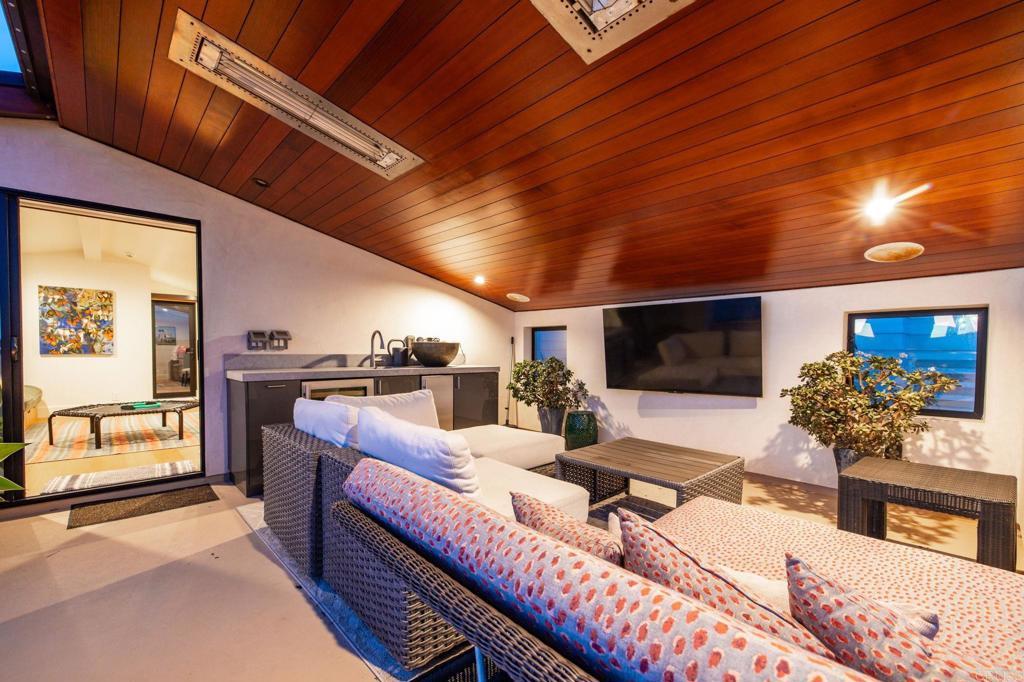 Experience the pinnacle of coastal living in this exceptional three-story residence, just steps from the beach and thoughtfully designed for elevated seaside living. This stunning home features a bright open floor plan, soaring 9-foot ceilings, and rich hardwood floors throughout, seamlessly blending luxury, comfort, and modern design. Offering three spacious bedrooms and five beautifully appointed bathrooms, the layout provides both privacy and versatility, including a bonus room on the top floor—ideal for a media room, office, or additional entertaining space. An in-home elevator provides effortless access to all levels. The gourmet chef’s kitchen is a true showpiece, equipped with top-of-the-line appliances including Wolf double ovens with steamer, a Wolf 6-burner range, built-in Wolf espresso maker, Sub-Zero refrigerator, Miele dishwasher, and a built-in wine refrigerator. Elegant Bianco Cielo natural stone countertops complete the space, perfect for both everyday living and entertaining. Outdoor living is seamless with two expansive rooftop decks, where ocean views, city lights, and Newport Center create a stunning backdrop. The rear rooftop deck features a private Jacuzzi—an ideal setting to relax, entertain, and enjoy coastal sunsets. A welcoming front patio further enhances the home’s indoor-outdoor lifestyle. Additional luxury features include owned solar panels, an exterior lighting system, surround sound speakers, integrated lighting system, video surveillance and a tankless hot water heater with an integrated water filtration system, and a spacious two-car garage with storage plus a rare additional carport space.