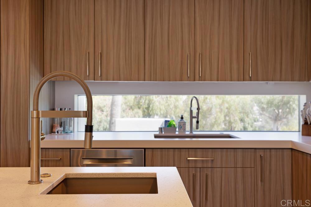 The home is located on one Cardiff's premier private streets in the Composer District; overlooking a private canyon to the front and the ocean to the back. The location offers unparalleled privacy and walkability to the beach, shopping and dining. The soft contemporary home was professionally remodeled seven years ago with meticulous attention paid to every detail. The home is offered furnished with high end Restoration Hardware furnishings; top of the line appliances, custom lighting and art (Some of the art and furnishings are not included). This is a one of a kind beautifully crafted custom home and offers a rare ownership opportunity. Spanning nearly 4,000 square feet, the 4-bedroom, 4-bath residence includes a rare oversized 4-car garage and a resort-style outdoor oasis featuring a Pebble Sheen blue granite pool and spa, fire pit, built-in BBQ, and custom LED lighting. Four expansive terraces with sleek glass railings and a generously sized yard create seamless indoor-outdoor living, ideal for both everyday comfort and elevated entertaining. Every detail has been thoughtfully curated, defining true coastal luxury. The chef’s kitchen is a true showpiece, equipped with Sub-Zero refrigeration, a Wolf 36” gas range with griddle, Vent-A-Hood stainless steel hood, Bosch dishwasher, Miele integrated refrigeration and combi-steam oven, and Blanco fixtures. Designed to impress, the home also offers a game room, wine cellar, wet bar, and Sonos surround sound system. Just minutes from Cardiff’s top restaurants, grocery stores, boutiques, parks, and the beach, this extraordinary residence captures the very best of coastal California living.