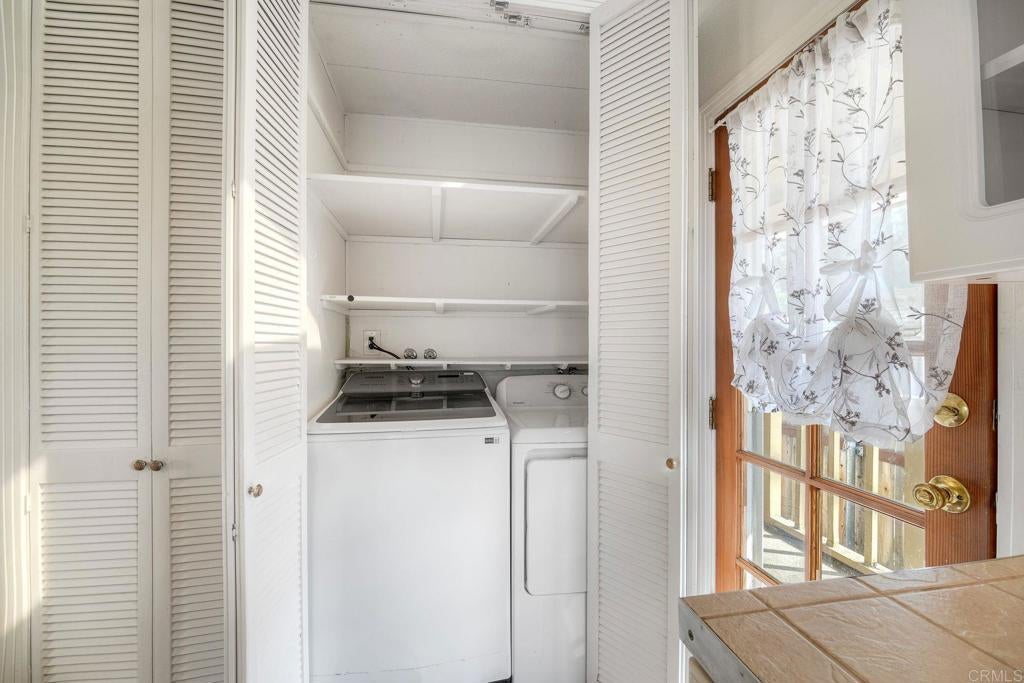 Welcome home to your own slice of serenity in the desirable Pepperwood Mobile Park. This spacious 2-bedroom, 2-bath residence offers a thoughtfully designed layout filled with natural light and inviting living spaces. Step inside to soaring vaulted ceilings and expansive windows that brighten the home with warm, natural light. The well-appointed kitchen provides abundant storage and features a generously sized island with built-in oven and cooktop — perfect for preparing meals while staying connected to guests. The kitchen flows effortlessly into the living room, creating an ideal space for entertaining. Beautiful wood-style flooring runs throughout the main living areas, adding both style and durability. Both bedrooms are comfortably sized and conveniently located off the hallway, each offering direct access to outdoor space for added privacy and convenience. Out back, you’ll find a spacious, private deck — an ideal setting for relaxing mornings or hosting gatherings with friends and family. With the community center and pool just across the street, there’s always something to enjoy year-round. Nestled among the scenic hills of El Cajon, this home offers the perfect blend of comfort, community, and carefree living — an exceptional opportunity to enjoy your golden years in style.