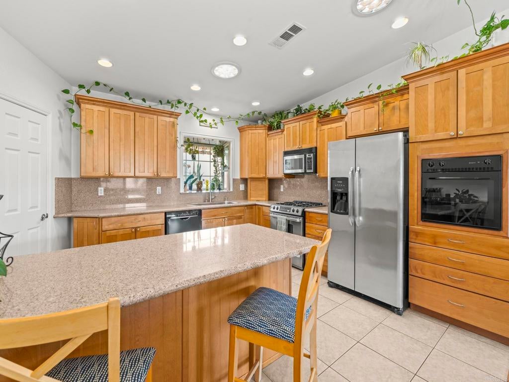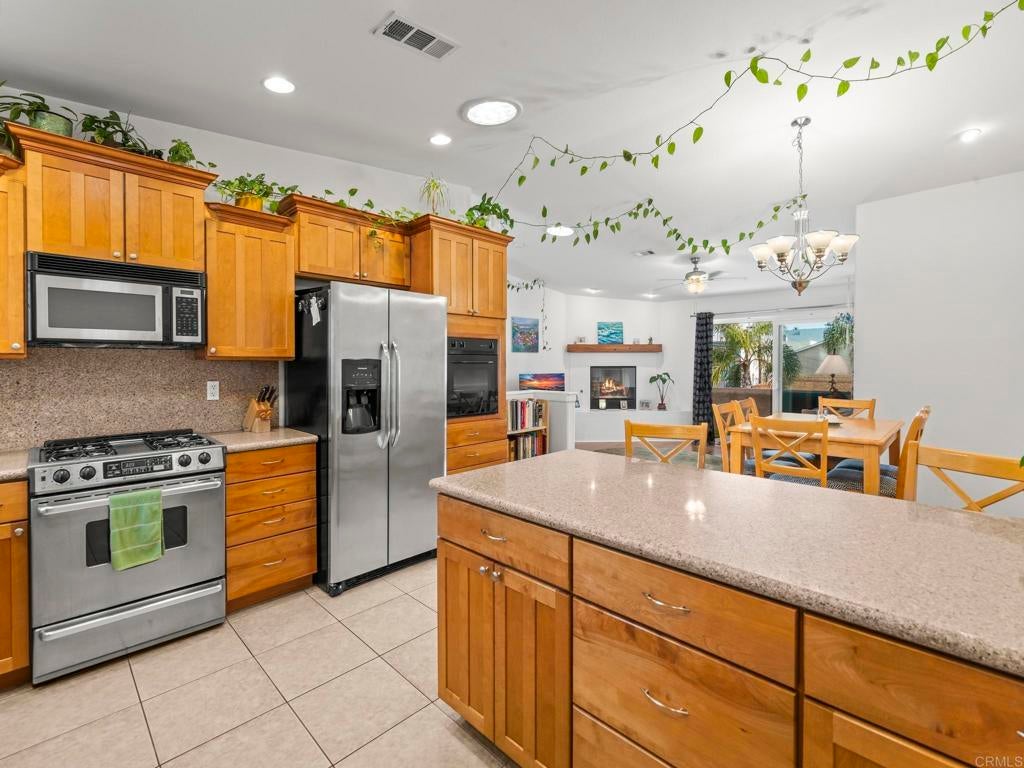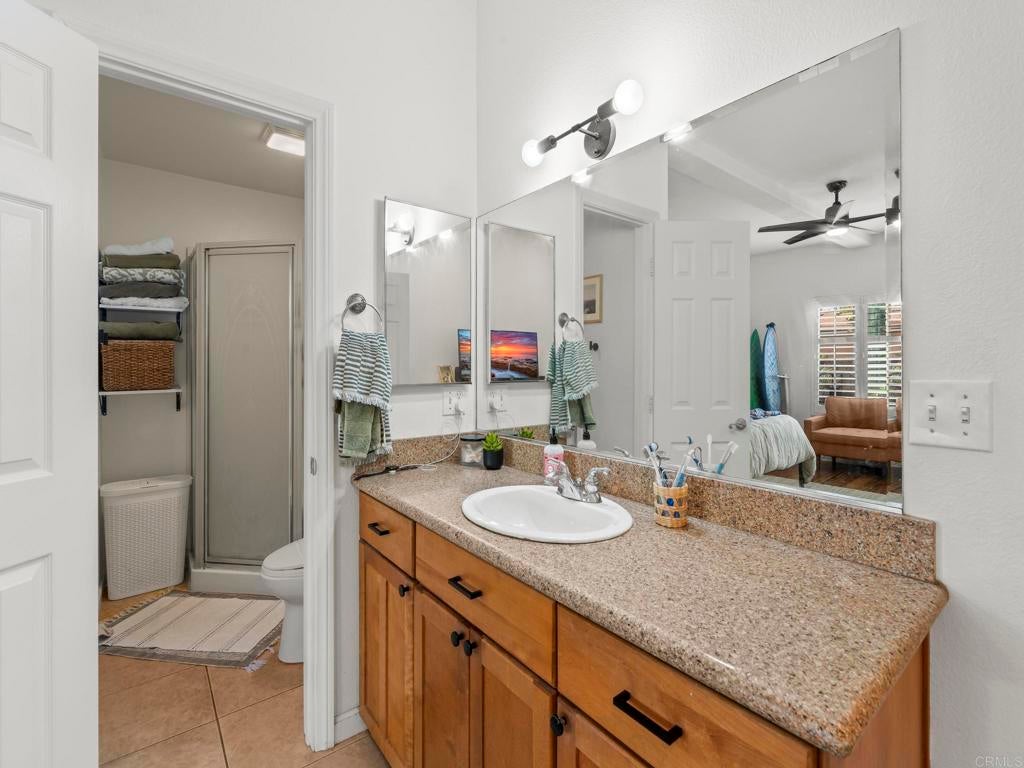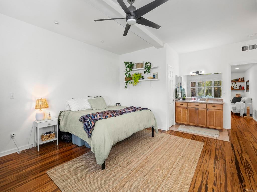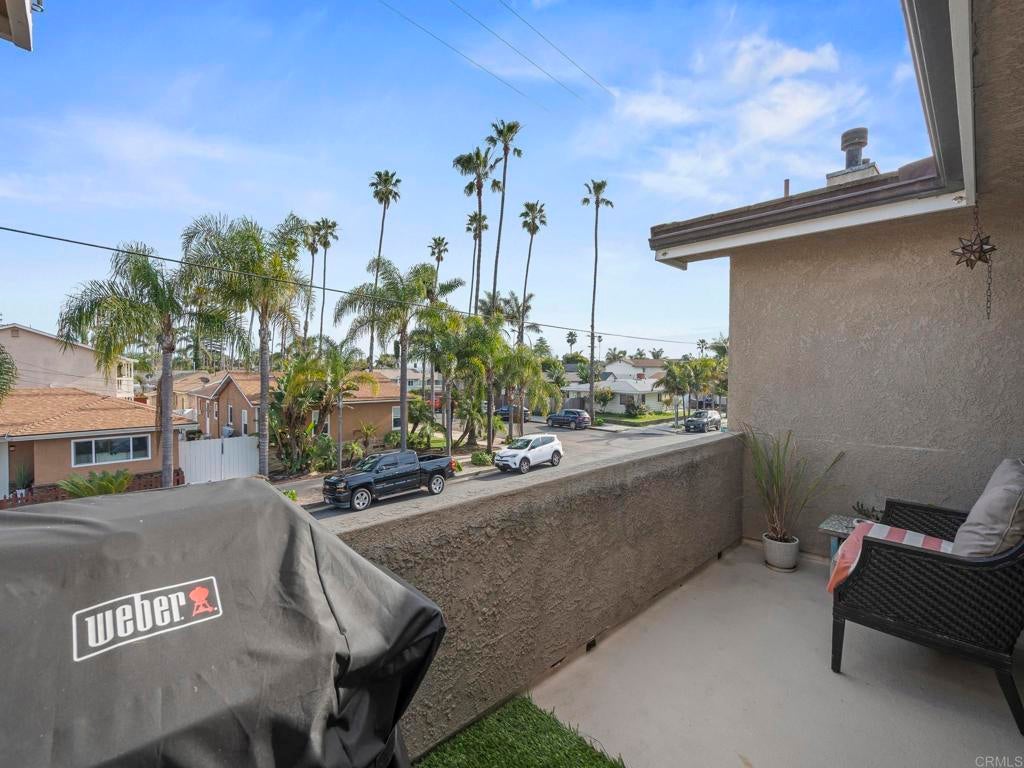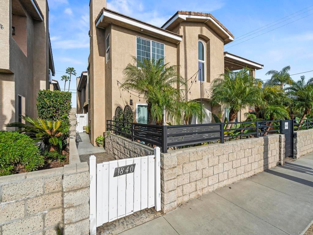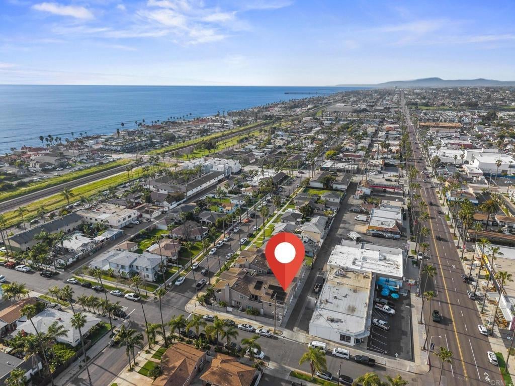 Welcome to an exceptional South Oceanside opportunity just blocks from the sand and steps to dozens of local cafés, shops, and restaurants. This coastal residence offers flexibility, income potential, and energy efficiency — all in one of the most iconic palm-tree-lined streets in South O. Only three blocks to the beach, this home captures the best of the South Oceanside lifestyle. Inside, a light-filled open layout features sliding doors that seamlessly connect indoor comfort with private outdoor space. Dual fireplaces add warmth and character to both the living room and the primary suite, while plantation shutters and quality finishes enhance the home’s coastal charm. Tropical landscaping and a gated front courtyard create inviting curb appeal, and an over-sized, attached two-car garage offering an epoxy floor with a huge storage system. The property is further elevated by an owned solar system installed in March 2023 with 18 panels producing approximately 11,405 kWh annually. The system includes transferable Net Energy Metering 2.0 with a 20-year grandfather period, providing meaningful long-term energy savings, along with a dedicated EV charging outlet. High and vaulted ceilings, solatubes for abundant natural light, fresh interior paint, and new window screens contribute to the home’s bright and airy feel. The primary suite offers a spacious walk-in closet, while the home also features an oversized walk-in pantry, a Jacuzzi tub in the secondary bathroom, secondary window A/C in bedroom two, and two washer and dryer hookups located in the garage and upstairs. The tile roof carries a 50-year warranty and the yard is designed for low-maintenance coastal living. An attached 800 square foot, ground floor in-law flat that is separate from the main 1,727 square foot main residence. The flat includes one bedroom, one and a half baths, a full kitchen, and high ceilings. Long-term tenants would love to remain, offering immediate income potential or flexible multigenerational living options. With a low HOA of just $50 per month and a location surrounded by shopping, dining, and transit, this rare coastal property delivers the walkable beach lifestyle buyers crave, along with energy efficiency and income flexibility in one of Oceanside’s most desirable neighborhoods.