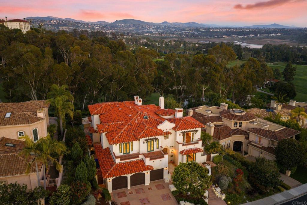 Commanding one of the most desirable golf course settings in Carlsbad, 7206 Aviara presents a rare opportunity inside the gated enclave of Aviara Point. With uninterrupted views over the 8th hole of Aviara Golf Club, stretching across Batiquitos Lagoon to the Pacific Ocean beyond, the setting alone is extraordinary. Paired with custom craftsmanship and thoughtfully curated interiors, this estate embodies the pinnacle of Southern California luxury living. Inside, soaring ceilings and expansive walls of glass frame the fairway views while inviting in natural light and steady coastal breezes. The floor plan balances grand-scale entertaining with intimate everyday living, highlighted by custom cabinetry, rich stonework, designer lighting, and architectural detailing that create a timeless, refined atmosphere. Five fireplaces are thoughtfully integrated throughout the home, adding warmth, ambiance, and architectural character to its beautifully designed living spaces. The chef’s kitchen is both striking and highly functional, appointed with a Sub-Zero refrigerator, dedicated baking oven, handcrafted cabinetry, and a sunlit breakfast nook wrapped in windows. Just off the main kitchen, a butler’s pantry — designed as a private prep kitchen — adds convenience and elegance for seamless hosting. The formal dining room offers a dramatic yet sophisticated setting for gatherings, complemented by a temperature-controlled wine room and thoughtfully designed bar area. A dedicated bonus room on the main level offers a comfortable space for recreation or media. Upstairs, the primary suite serves as a luxurious sanctuary overlooking the fairways, with tranquil golf course views and direct access to a private balcony. A fireplace adds warmth and ambiance, while the spa-inspired bath features heated floors and a heated towel rack. The expansive custom closet is enhanced by an adjoining private dressing room — a versatile retreat that could also serve as a nursery, spa room, executive office, fitness space, or meditation lounge. Also upstairs, a beautifully appointed office that could easily function as a private library showcases stunning built-in cabinetry and its own fireplace, along with access to a terrace where ocean views create an inspiring setting for work, reading, or quiet reflection. Two secondary bedrooms each feature their own en suite bathrooms and share a beautifully positioned terrace, offering their own outdoor escape with elevated ocean views. Elevator access to both levels ensures comfort and convenience throughout the home. The laundry room is impressively oversized and thoughtfully renovated, featuring abundant cabinetry, generous workspace, and two brand-new LG washers paired with two LG dryers — designed to handle both everyday living and large-scale entertaining with ease. Recent improvements also include new interior and garage paint, updated recessed lighting, new faucets in the kitchen, butler’s pantry, bar, and laundry room, refinished garage cabinetry with new lighting, and two new 75-gallon water heaters. Outdoors, the property transforms into a private resort-like retreat. Multiple water features create a tranquil ambiance, while the expansive BBQ and bar area, outdoor fireplace, and generous entertaining spaces overlook the rolling fairways. The large lot offers ample room to add a pool or spa, further elevating the estate’s lifestyle potential. Ocean views from the upstairs terraces and refreshing coastal breezes complete the serene setting. Set within one of Carlsbad’s most exclusive gated communities and just minutes from world-class beaches, dining, and top-rated schools, this is a legacy-caliber residence designed for those who expect nothing less than exceptional.