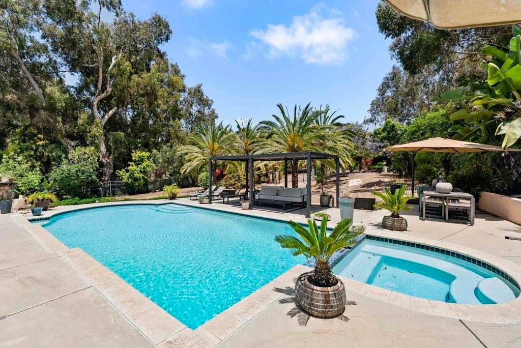 Arroyo Sorrento is a stunning, fully furnished Carmel Valley estate that blends elegance, comfort, and resort-style living. Tucked behind a private gate, this home greets you with incredible curb appeal and a grand entrance that sets the tone for what lies beyond. Spanning nearly 4,700 square feet, this beautifully designed residence features 4 spacious bedrooms, a dedicated office, multiple indoor and outdoor living spaces ideal for both relaxation and entertaining, and a resort-style pool thoughtfully set apart from the main home which creates a tranquil escape reminiscent of a luxury retreat. Whether you're hosting gatherings on the expansive view patios and decks, cozying up around one of the firepits, or enjoying seamless indoor-outdoor flow, every detail of this home is crafted for elevated living. Located in one of San Diego’s most sought-after neighborhoods, you’ll enjoy close proximity to top-rated schools, award-winning restaurants, Del Mar Beach, Torrey Pines hiking trails, fitness centers, parks, and easy access to the freeway – making everyday life both convenient and inspiring.