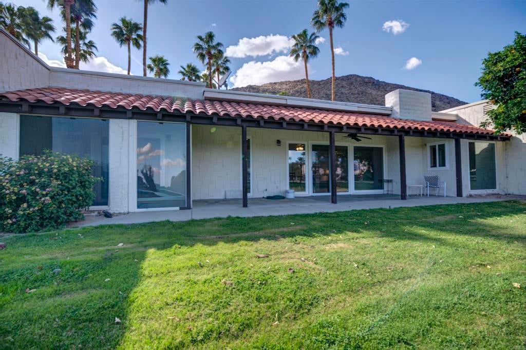 Nestled on a quiet cul-de-sac within the prestigious De Anza Villas, this 2-bedroom, 2-bathroom sanctuary offers the ultimate desert lifestyle directly on the lush fairways of the De Anza Country Club. Combining mid-century character with modern efficiency, the home is powered by a full solar system, ensuring sustainable living and significant energy savings. Inside, the 1,348 sq. ft. open-concept layout is bathed in natural light and anchored by a stylishly updated kitchen featuring newer appliances and durable laminate flooring that extends through the main living areas and master bedroom. The heart of the home is the inviting living room, where a classic fireplace is flanked by a versatile bonus alcove. With its inspiring views of the greens, this space is perfectly suited for a quiet study or a scenic home office. The private quarters offer equal comfort, with newer carpeting in both bedrooms and a master suite that serves as a true retreat. The master bath has been upgraded with a contemporary tile shower, and a secondary bonus room off the master bedroom provides the perfect solution for hobby space or climate-controlled storage. Step outside to the private patio to enjoy the serene silence of the Borrego desert and panoramic golf course vistas. With HOA-covered grounds maintenance, a community pool, and tennis courts, this home offers a seamless, turn-key experience in one of Borrego Springs' most coveted locations.