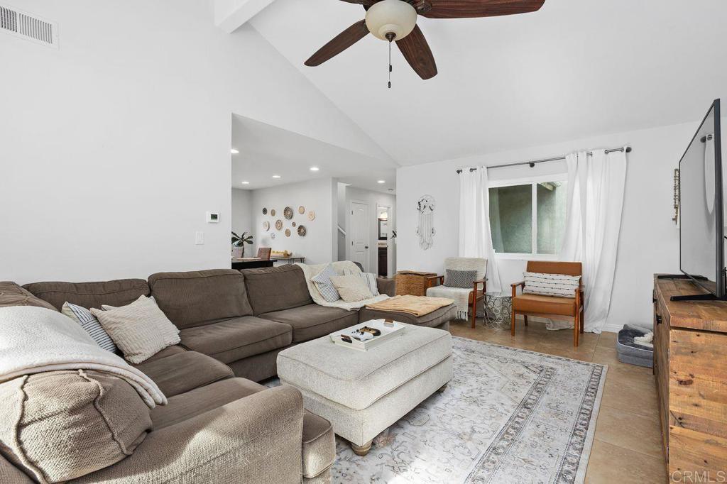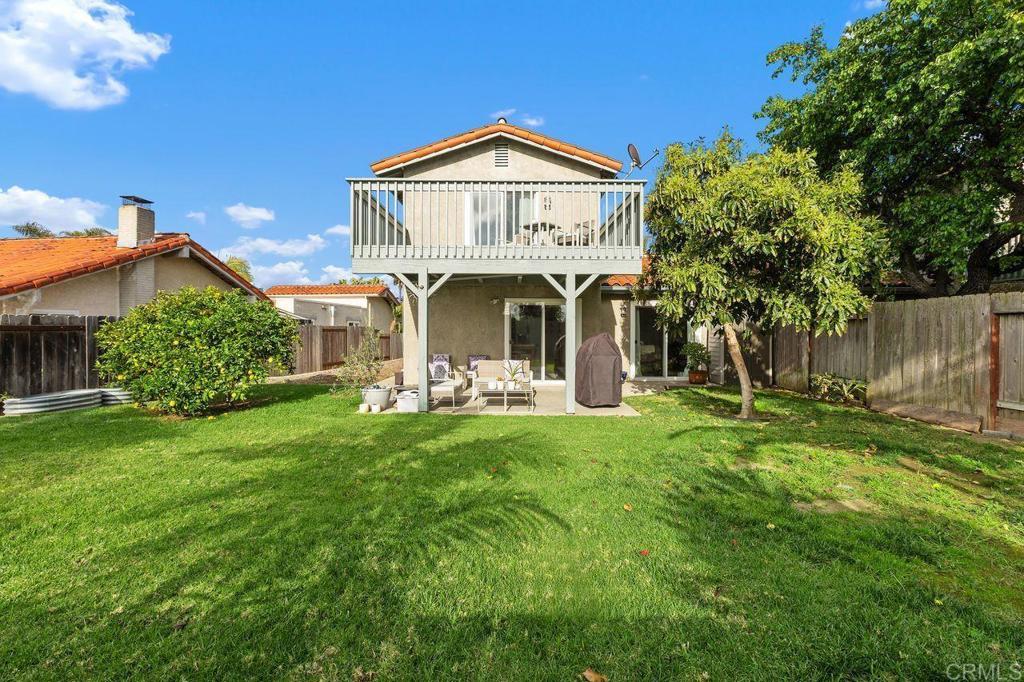 Beautifully crafted custom twin home that lives like a detached residence, offering space, privacy, and thoughtful design in a highly desirable La Costa setting. The well-conceived floorplan features a spacious eat-in kitchen, a formal dining room perfect for entertaining, and a bright, airy living room with cozy fireplace enhanced by soaring vaulted ceilings and abundant natural light. The kitchen and bathrooms showcase custom cabinetry, complemented by granite countertops, stainless steel appliances, and a gas range, creating a stylish and functional culinary space. Updated windows throughout enhance both comfort and energy efficiency. The primary suite opens to an expansive private balcony where you can relax and enjoy sweeping panoramic views—an ideal setting for morning coffee or evening sunsets. Indoor living seamlessly flows outdoors, with the living room and kitchen opening to a large, lush backyard featuring mature fruit trees and plenty of space to garden, entertain, or simply unwind in a peaceful setting. Tucked in a quiet and exceptionally private location, this property offers the serenity many buyers seek. Additional highlights include an attached two-car garage and an extended driveway providing ample guest parking—and best of all, NO HOA. A truly unique opportunity in one of La Costa’s most desirable neighborhoods, conveniently located near highly regarded La Costa Meadows Elementary School, excellent shopping, dining, and just minutes from the stunning beaches of the Pacific Ocean.