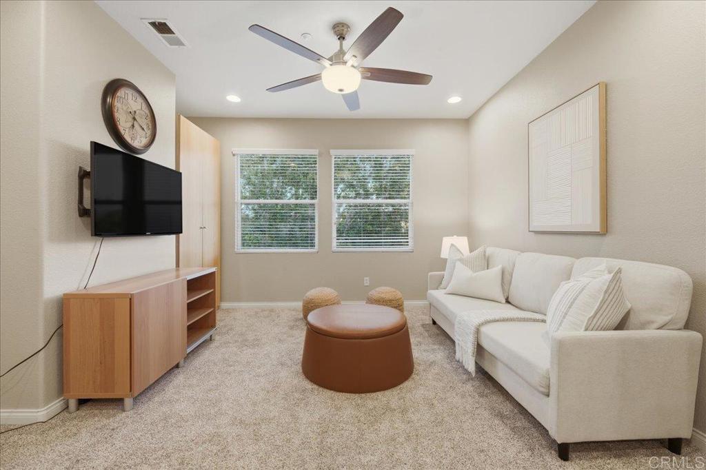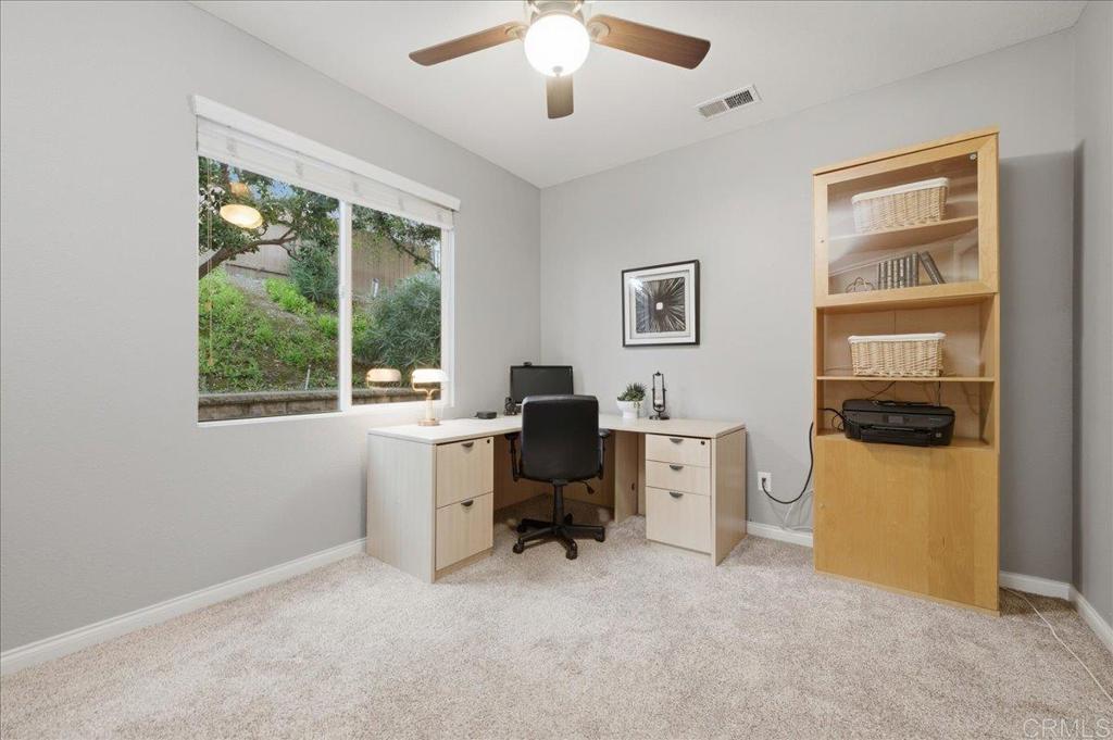 Rare Opportunity – Newer Construction with No Mello-Roos in a Prime Cul-de-Sac Location Welcome to 18385 Reata Way, a beautifully maintained home located on a quiet cul-de-sac in one of North County’s most desirable neighborhoods. This gorgeous home offers 4 bedrooms, 4 bathrooms, plus a large upstairs loft and a dedicated first-floor office (or optional 5th Bedroom with a full downstairs bath), ideal for working from home or creating a flexible bonus space. The home has been well cared for and features fresh interior paint, designer tile flooring, and a bright open floor plan that works well for both everyday living and entertaining. The large chef’s kitchen features a large center island, granite counters, a gas cooktop, and plenty of cabinetry and counterspace. The primary suite is a comfortable retreat with its own fireplace, sitting area, and scenic views. The primary bath offers dual sinks, a soaking tub, separate shower, and generous walk-in closets. Additional features include three fireplaces located in the living room, family room, and primary suite, a separate laundry room with sink, and a three-car garage with overhead storage. The front driveway provides additional parking for guests. The private backyard offers a large grassy area, covered patio, BBQ island, peaceful views and spa—perfect for relaxing or entertaining. Located within the highly regarded Poway Unified School District, this home offers an excellent combination of location, floor plan, and comfort, along with the added benefit of no Mello-Roos. As part of the community, membership with Rancho Bernardo Swim and Tennis Club includes a state of the art gym, tennis courts, pickleball, spa, pool, basketball courts, and a variety of classes to keep you active and engaged.