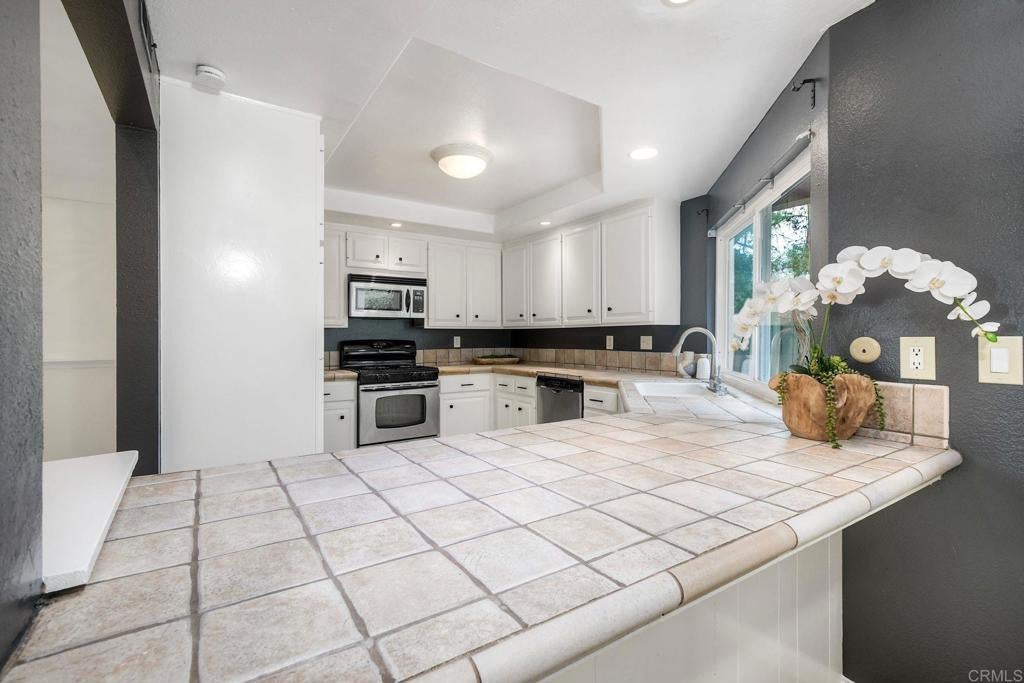 Enjoy Beautiful Panoramic Views from this spacious, 1 story detached home in the lovely Encinitas community of Skyloft. Featuring a lushly landscaped backyard and nestled on the canyon with expansive mesmerizing hill and mountain views as well as multiple patios, this sun filled home offers indoor and outdoor living at its best, whether for relaxation or entertaining. The thoughtful open floorplan includes a large living room with fireplace, vaulted ceilings and a private primary suite with amazing, serene views. Resort-like Skyloft amenities include pool, spa, tennis and pickleball courts and clubhouse, plus HOA pays for water. Great westerly location, near beaches, shopping, restaurants, Encinitas Ranch Golf Course and convenient freeway access and located in the fabulous Encinitas and San Dieguito Union school districts. Coastal California living at its best!