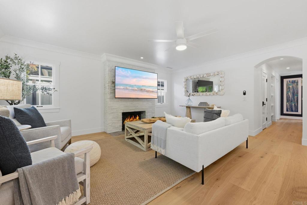 Single-Story Coastal Stunner — Just Steps to the Sand in the Del Mar Beach Colony. Welcome to 1820 Coast Blvd, a beautifully remodeled single-level beach retreat located one house from the sand in the coveted Del Mar Beach Colony. Blending timeless coastal elegance with modern luxury upgrades, this exceptional home offers the rare combination of walk-to-the-beach convenience, refined design, and effortless indoor-outdoor living. A generous courtyard entry and charming Dutch-door welcome set the tone for this inviting coastal residence. Inside, sun-filled living spaces showcase French Oak wood flooring, custom built-ins, and dual fireplaces, creating warmth and sophistication throughout the open-concept layout. Large doors and windows invite the ocean breeze and natural light, capturing the carefree spirit of beachside living. The chef’s kitchen is designed for both everyday living and entertaining, featuring Viking appliances, custom cabinetry, and a walk-in pantry, seamlessly flowing into the dining and lounge areas. The thoughtfully designed floor plan includes 3 bedrooms and 3.5 baths, plus a spacious loft retreat with 6 beds and storage, perfect for accommodating additional guests after long days at the beach. The primary suite offers a peaceful sanctuary with a large walk-in closet and spa-inspired marble bath. Designed to fully embrace the Southern California lifestyle, the home offers exceptional indoor-outdoor living with both front and rear patios. The backyard is beautifully landscaped and features an outdoor fireplace, outdoor TV, and outdoor shower, along with a private gate providing convenient access toward Ocean Front and the beach—perfect for rinsing off after surf sessions or sunset walks along the shore. Modern sustainability and comfort are also thoughtfully integrated with owned solar panels, Tesla Powerwalls for energy storage, and a tankless water heater, offering both efficiency and peace of mind. Additional highlights include two fireplaces, a large two-car garage, and additional driveway parking, all rare luxuries close to the sand. From this premier location, you are just a short stroll to the shops, cafés, and acclaimed restaurants of Del Mar Village, nearby Powerhouse Park, and the world-famous Del Mar Racetrack. The renowned Torrey Pines Golf Course and the breathtaking coastal hiking trails of Torrey Pines State Natural Reserve are also just a short drive away. Whether as a primary residence, beach getaway, or investment in one of Southern California’s most iconic coastal communities, 1820 Coast Blvd delivers the quintessential Del Mar lifestyle—where the beach is steps away and every day feels like a vacation.