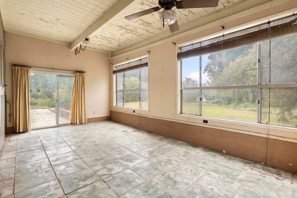 First time on the market, this original-owner home is full of possibility and ready for its next chapter. Set on an expansive 0.63-acre lot in a well-established neighborhood near Santana High School, this 3 bedroom, 2 bathroom fixer offers a rare combination of space, privacy, and potential. The home is filled with natural light and sits near the center of the lot, creating a peaceful setting. Beautiful wood beams throughout the home add warmth, character, and so much possibility for someone to make the space their own. Surrounded by views of the mountains, the setting feels especially special. Outside, the property features a pond, fruit trees, and a long driveway with plenty of space for RV parking, extra vehicles, and toys. A carport structure with a concrete pad and two sheds add even more flexibility for storage, hobbies, or future use. With so much land, a great location, and endless opportunity, this is a home someone can truly love forever.
