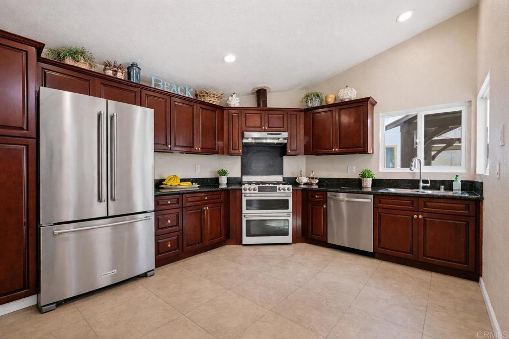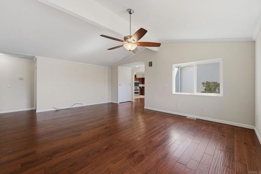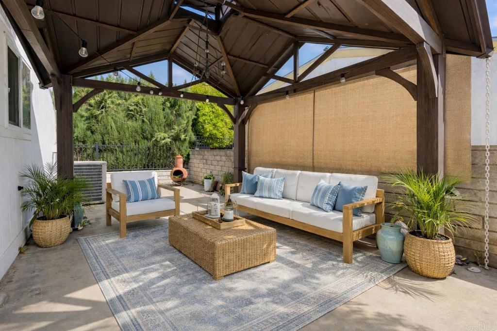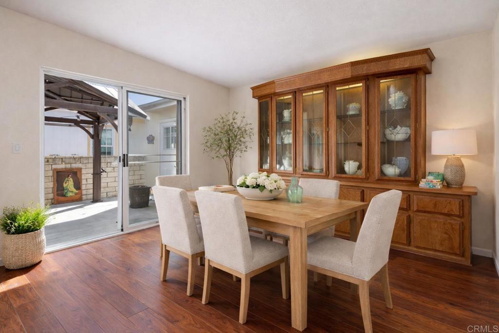 Welcome to Vista Del Mar, where you own the land—NO SPACE RENT! This exceptionally maintained single-story home offers a spacious 1,716 sq ft open-concept floor plan with 3 bedrooms and 2 full bathrooms highlighted by soaring vaulted ceilings that create a dramatic sense of volume, light, and openness, making the living spaces feel even more spacious and inviting. The airy, flowing layout seamlessly connects the living, dining, and kitchen area. The generously sized kitchen is appointed with granite countertops, stainless steel appliances, and ample cabinet and prep space, while rich Hickory Autumn hardwood flooring adds warmth and character throughout the home. The primary suite offers a peaceful retreat complete with a large walk-in closet, soaking tub and shower. Additional features include Milgard double-pane windows installed in June 2020, roofing installed in 2015, central air conditioning, an oversized washer and dryer room inside the home, and a spacious two-car garage. Ideally situated on a desirable corner lot and tucked away toward the back of the park, this home offers a quiet and private setting. Relax and unwind beneath the elegant backyard pergola, where the thoughtfully designed structure provides cool, dappled shade and a tranquil outdoor ambiance—creating the perfect setting for comfortable outdoor lounging, and entertaining. Enjoy a low HOA of just $110 per month, granting access to an impressive collection of resort-style amenities, including a beautifully appointed clubhouse, quiet library, pickleball and tennis courts, sparkling swimming pool and spa, fully equipped fitness center, billiards room, and the added convenience of RV and boat parking—all designed to enhance a vibrant and active lifestyle.