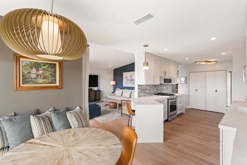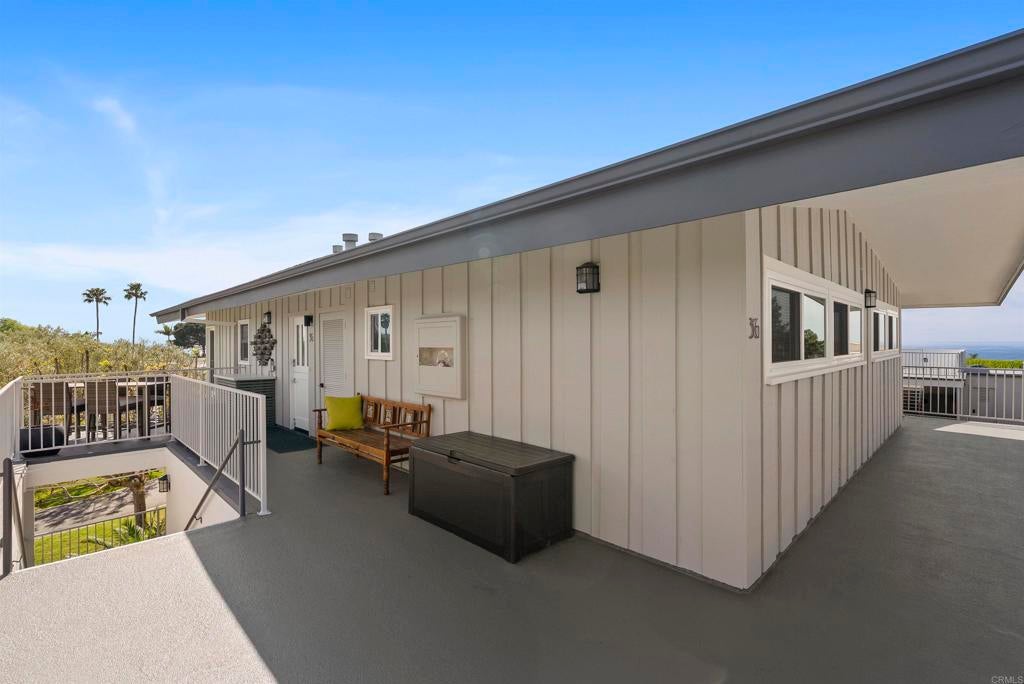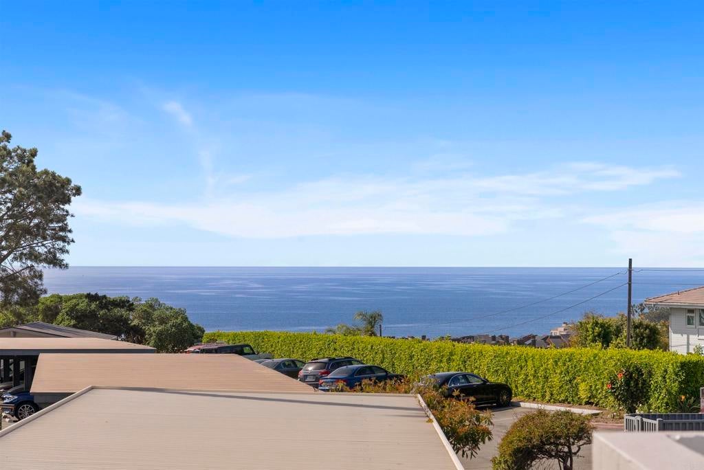 STUNNING LOCATION! Rare top-level end unit, this single-story luxury penthouse in Park Del Mar offers breathtaking panoramic ocean views. Completely remodeled from top to bottom with premium finishes, the home features custom folding glass doors that open seamlessly to your private patio, perfect for enjoying uninterrupted ocean breezes and spectacular sunsets. The open-concept floor plan showcases vaulted ceilings, beautiful wood flooring throughout, and abundant natural light. The residence offers 2 bedrooms and 2 full baths, thoughtfully designed with exquisite, spa-inspired finishes. The gourmet kitchen is equipped with top-of-the-line KitchenAid appliances and a Bosch refrigerator, ideal for both everyday living and entertaining. A full-size washer and dryer are conveniently located within the unit. Additional highlights include a nearby covered carport plus an additional open parking space for a second vehicle, as well as a private storage unit. The home also overlooks a tranquil greenbelt with a park-like setting. Residents enjoy resort-style amenities including a pool, sauna, and spectacular ocean-view clubhouse featuring a kitchen, showers, changing areas, ping pong, shuffleboard, and more. Ideally located just minutes from the beautiful beaches of Solana Beach, Del Mar, and Encinitas, as well as outstanding restaurants, shopping, and the world-famous Del Mar Racetrack.