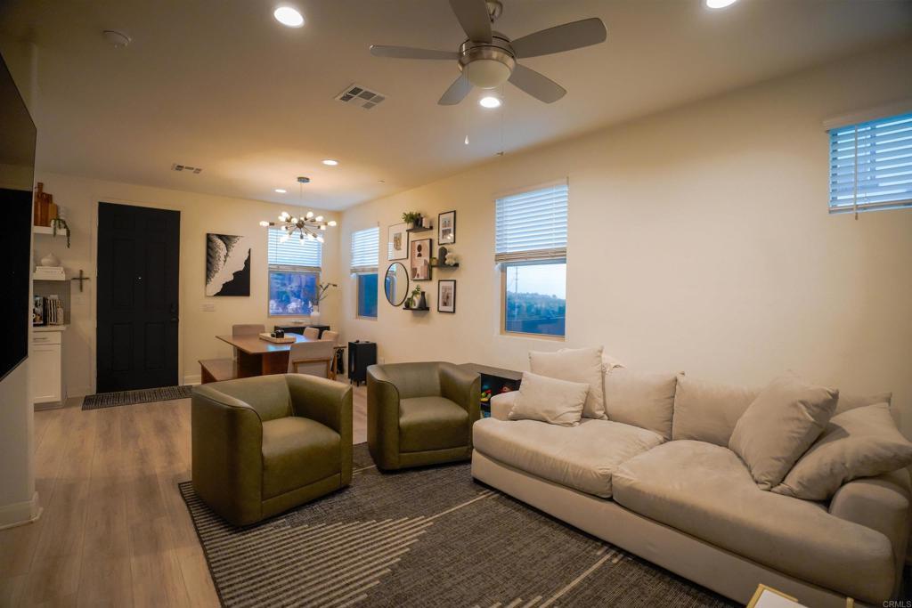 Imagine waking up to the gentle pull of a coastal breeze and the knowledge that the Pacific is just a 15-minute drive from your doorstep. This stunning end-unit in the coveted Skyline community offers a rare vantage point, standing as one of the only homes in the neighborhood with a clear, unobstructed view of the ocean and sprawling hillside vistas. Built in 2019, this residence blends modern sophistication with the warmth of a true sanctuary, featuring high ceilings and an abundance of natural light that follows you from the open-concept living area to the spacious primary suite. For the active soul, a network of hiking, biking, and running trails sits directly across the street, while the resort-style community amenities—including a sparkling pool, spa, and playground—provide a vacation-like escape just steps away. Convenience is woven into every detail of this location, placing you within the award-winning San Marcos Unified School District and just minutes from local favorites like Discovery Lake and Legoland. Whether you are working from home with smart technology at your fingertips or heading out to explore the best of North County, this home offers an unparalleled lifestyle where every day feels like a getaway.