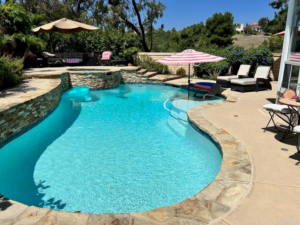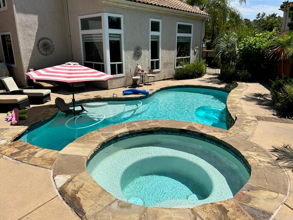 Beautifully maintained home in the desirable Guajome neighborhood of Oceanside. This inviting residence features a bright and open floor plan with several spacious living areas, abundant natural light, and a seamless flow perfect for everyday living and entertaining. The kitchen offers ample cabinetry and counter space, opening to a comfortable family room. A convenient downstairs bedroom and full bathroom provide ideal flexibility for guests or multi-generational living. Upstairs, the expansive primary suite is complemented by two generously sized secondary bedrooms and a large versatile bonus room with direct access to a private balcony - ideal for work-from-home needs or additional living space Step outside to your own private retreat. The backyard is designed for both relaxation and entertaining, featuring a sparkling pool, hot tub, and multiple areas to gather and unwind. A fully gated setting and charming courtyard entry enhance both privacy and curb appeal. Laundry room and large 3 car attached garage. Conveniently located near parks, shopping, dining, and easy freeway access, this home offers the best of coastal North County living.
