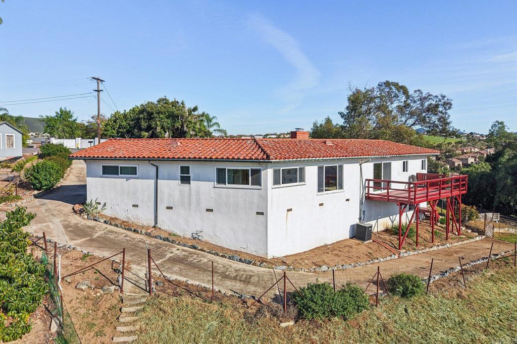 Set on a combined 2.44 acres and sold with an adjoining separately subdivided lot, this elevated Vista estate property presents a rare opportunity to own a private, expansive slice of North County within the top-rated San Marcos school district. Perched above the surrounding area, the property enjoys sweeping valley, hill, and distant ocean views, creating a peaceful and scenic setting with exceptional privacy. The single-story home offers 2 bedrooms, 2 bathrooms, plus a bonus office, along with a spacious kitchen, indoor laundry, air conditioning, vinyl windows, and a detached two-car garage. A view deck off the living area showcases the property’s stunning backdrop, while the generous grounds, mature trees, and wide-open acreage offer remarkable potential to enhance, expand, or reimagine over time. The adjoining lot, with its own address and access, adds significant value and flexibility for future development, multi-generational living, or creation of a truly one-of-a-kind compound.