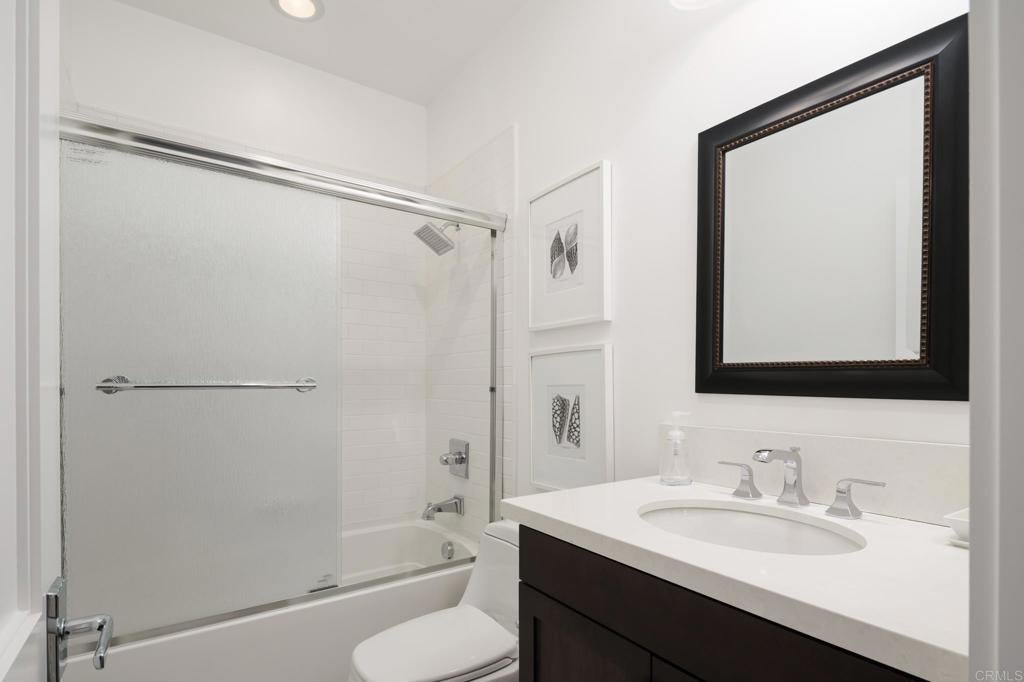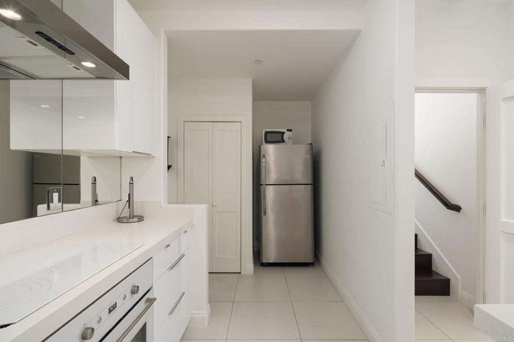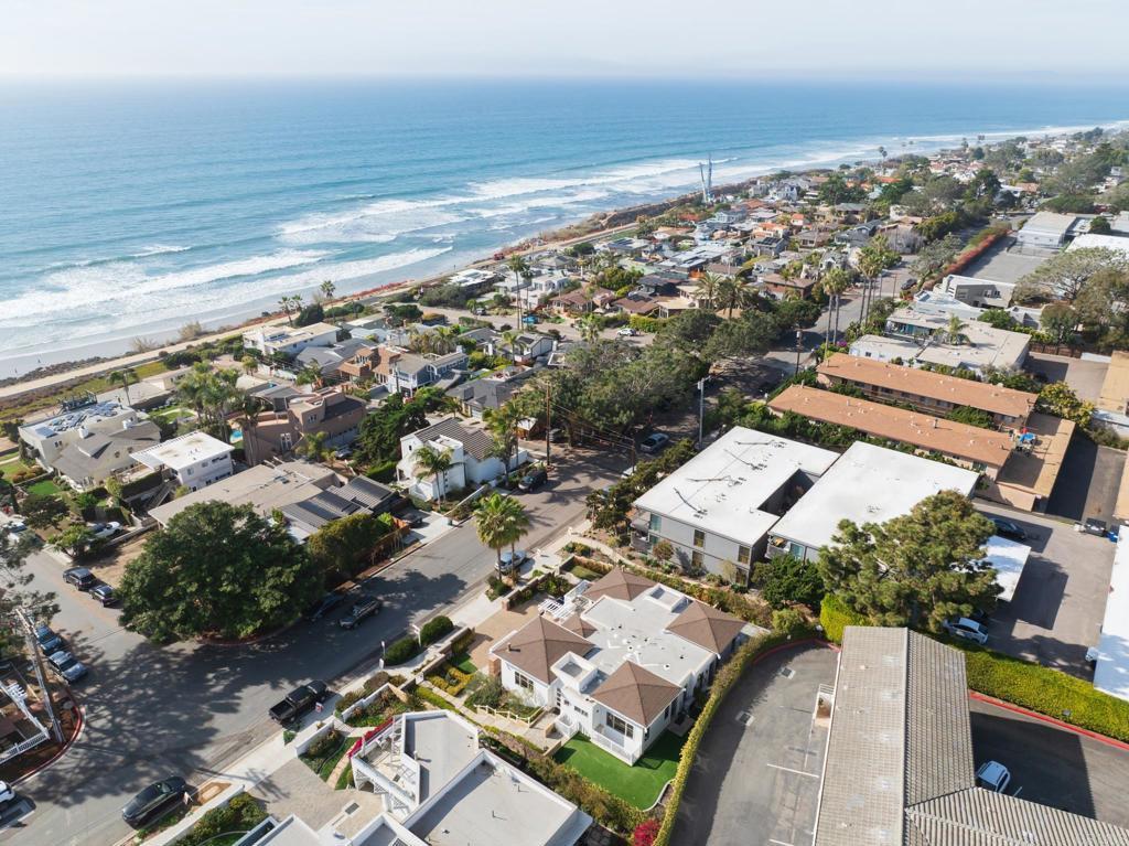This enchanting Del Mar Village townhome captures the essence of coastal living—steps from the iconic Bluffs and pristine beaches, with breathtaking front-facing ocean views. In the heart of the village, you’re moments from top restaurants, boutiques, cafés and Del Mar Plaza. The open layout features vaulted ceilings, a cozy fireplace, hardwood floors, and sliding doors to a private ocean-view balcony—ideal for sunset dinners and peaceful mornings. The gourmet kitchen offers an oversized island, stainless appliances, and custom cabinetry. The sunlit primary suite includes high ceilings, a large walk-in closet, spa bath, and stacked laundry. A one-car garage with EV charger plus carport parking add ease. The lower level provides a second primary, full laundry, ample storage, a second kitchen, and a versatile oversized room perfect for media, an office, or guests. Immaculately crafted and move-in ready, this rare sanctuary blends panoramic Pacific beauty with effortless Del Mar elegance.