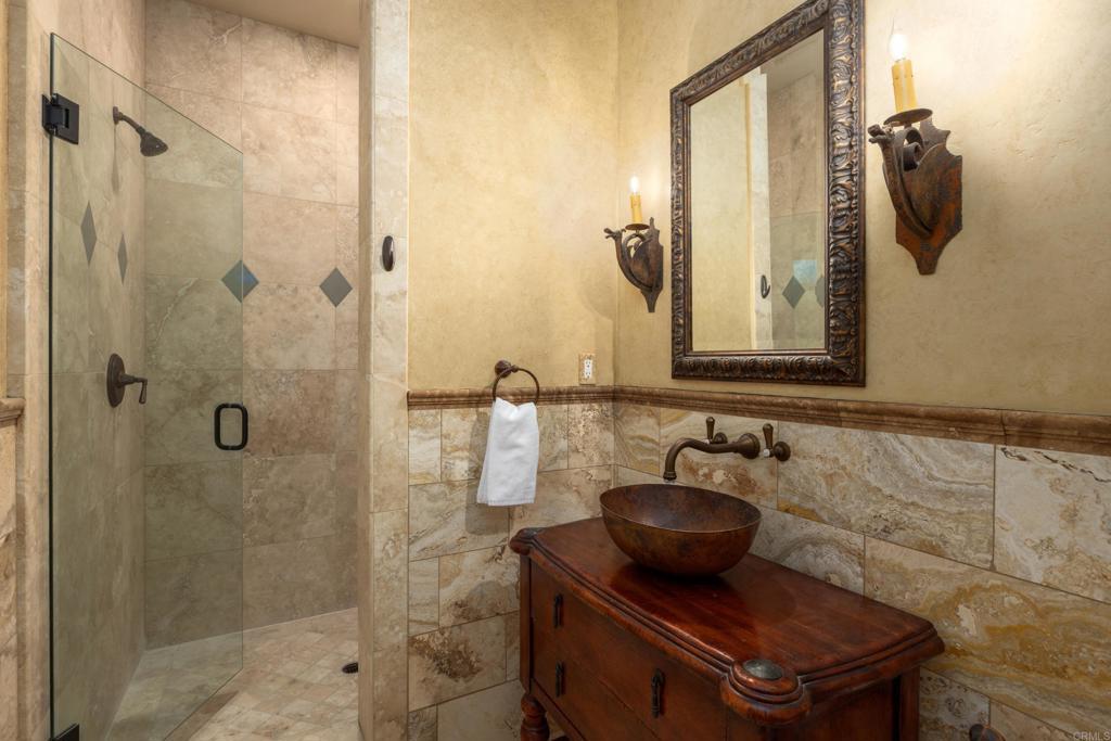 Tucked at the end of a quiet cul-de-sac within the exclusive gated enclave of Copper Crest, this Mediterranean estate offers exceptional privacy and timeless architectural design. The main house, approx 5,406 sq.ft. LIVES LIKE A SINGLE STORY with the primary suite and executive office conveniently located on the main level. Interior features rich hardwood floors, soaring open-beam ceilings, and a chef’s kitchen with Sub-Zero and Dacor appliances walk-in pantry & large center island. A detached 750 sq.ft. GUEST HOUSE (1bd/1ba) with full kitchen provides ideal space for guests, extended family, or flexible living. The resort-style backyard is designed for entertaining, highlighted by a renovated saltwater Pebble-Tech pool with grotto, baja shelf, waterslide, and spa, along with a redesigned putting green, covered palapa with built-in BBQ, and fire pit. Smart and sustainable features include a fully owned 33-panel SOLAR system with Enphase battery backup, Tesla EV charger, whole-house water filtration, and energy-efficient pool and irrigation systems. Enjoy nearby trails, a highly desirable school district, and convenient access to shopping, dining, and the coast—offering a rare blend of peaceful rural-style living with modern amenities. See attached doc section for more details