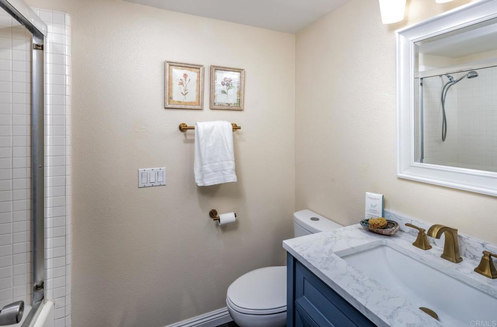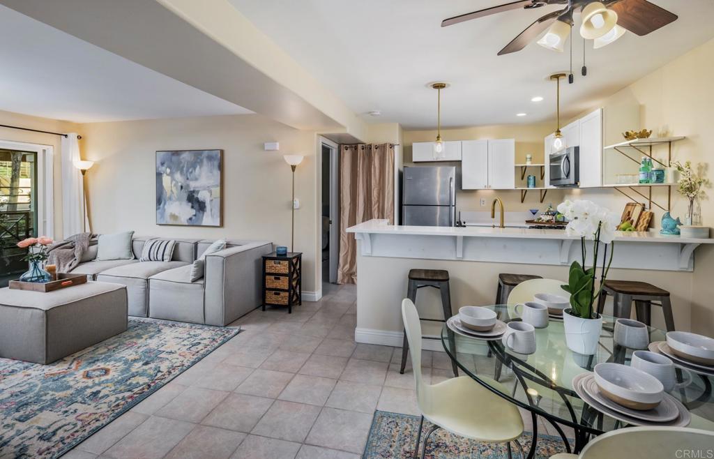 Welcome to this upgraded 2-bedroom, 2-bath single-story home in a desirable Carlsbad community. The home features a functional, well-designed floor plan with a spacious living room centered around a fireplace and sliding doors that open to a private patio. The kitchen offers gas cooking, breakfast bar seating, and a dedicated dining nook, creating a practical layout for both everyday living and entertaining. The interior has been thoughtfully improved with meaningful upgrades, including a remodeled kitchen, updated bathrooms, new dual-pane windows and sliding door, and a newer HVAC system, providing both comfort and long-term value. One bedroom includes direct access to the patio, enhancing the indoor-outdoor flow. Additional features include in-unit laundry, one covered parking space plus an additional uncovered space, and a large private storage unit nearby. The community offers a pool, fitness center, clubhouse, and well-maintained grounds. HOA covers water, trash, landscaping, exterior insurance, termite maintenance, and access to all amenities. Conveniently located near shopping, dining, Carlsbad beaches, and world renowned golf, this is a well-maintained, move-in ready home with a thoughtful layout and quality updates throughout.