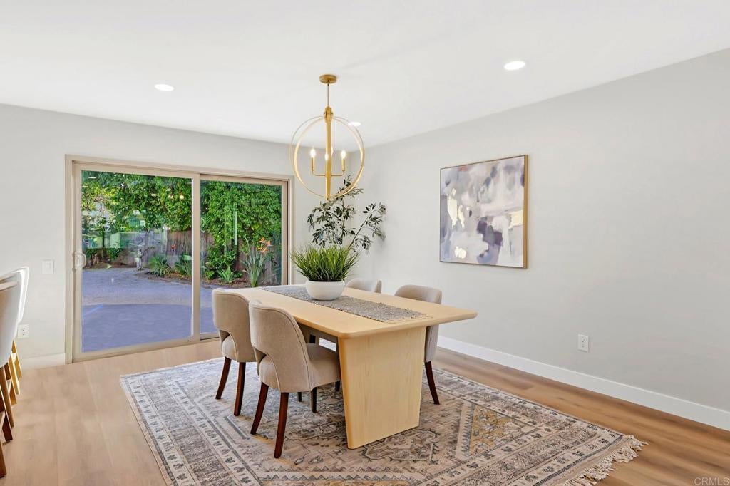 Single Level completely reimagined and beautifully renovated, this San Marcos home welcomes you with a fresh, modern feel from the moment you arrive with room for an ADU. Framed by gorgeous low-maintenance landscaping in both the front and back, it offers easy living with style at every turn. Inside, the home opens to a bright and airy living space filled with natural light from large windows, an open floor plan, and luxury LVP flooring throughout.The living room feels both warm and polished, centered around a white brick fireplace with a custom mantle that adds just the right touch of character. Just beyond, the spacious dining area invites gathering and connection, with a double-door slider that opens to the backyard and creates an effortless indoor-outdoor flow. The kitchen overlooks the living space, making it as functional as it is beautiful. Thoughtfully updated with quartz countertops, a tiled backsplash, brushed gold hardware, updated cabinetry, stainless steel appliances, bar seating, and a double sink set beneath a large window, it is designed for both everyday ease and entertaining. The primary suite is a peaceful retreat, spacious and bright, with an ensuite bathroom featuring a walk-in shower with custom tilework. Three additional guest bedrooms and an updated guest bathroom provide flexibility for family, visitors, or a home office setup. Out back, the large backyard offers plenty of room to dream, create, and make it your own. Perfectly located just one block from Woodland Park and Pool, walkable to Woodland Park Middle School, and close to shopping, restaurants, and freeway access, this home blends comfort, convenience, and modern charm in one inviting package