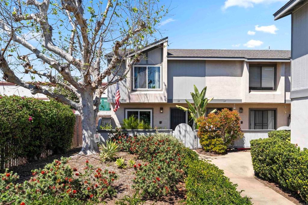 Welcome Home! This two-story end-unit townhouse offers the perfect blend of comfort and functionality. The first floor features a convenient bedroom, bathroom and an attached two-car garage. High ceilings and several windows fill the home with natural light and this desirable end-unit location has only one shared wall. Enjoy indoor-outdoor living with a private front patio perfect for entertaining and BBQs, plus an upstairs balcony for additional outdoor relaxation and includes a large storage space. The home comes fully equipped with all appliances, including the washer, dryer, and a large freezer in the garage. Recent upgrades include a new water heater, fresh interior paint, and a new dishwasher. A water softener system is also in place at just $30/month for added convenience. Additional features include a security system with a Ring doorbell camera for peace of mind and an assigned additional uncovered 3rd parking space for your guests. Residents enjoy access to community amenities including a tennis court, pool, and jacuzzi. The monthly HOA covers exterior building maintenance, landscaping, water, sewer, trash and limited insurance. Ideally located close to parks, shopping, and restaurants, this home is ready for you to make it your own! This is a VA approved complex!