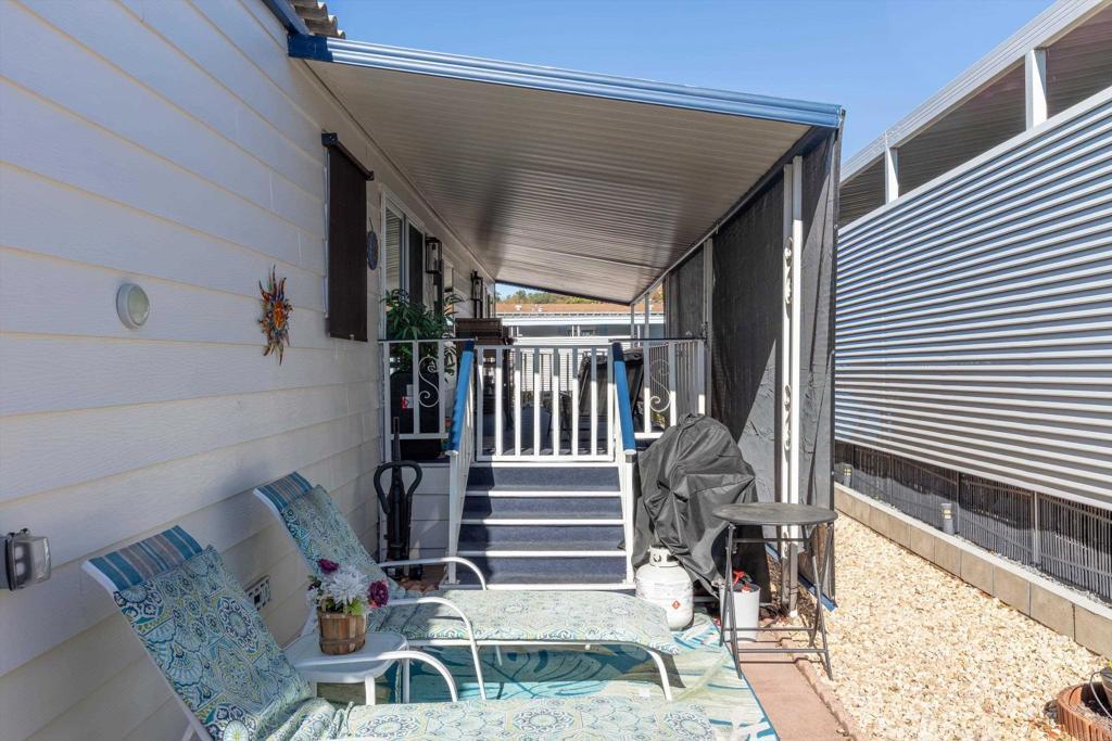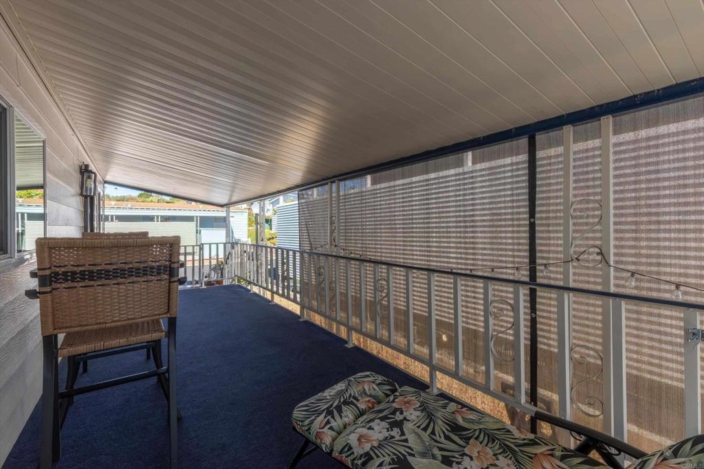 Beautifully Remodeled VIEW Home in Premier 55+ Community! Enjoy resort-style living in this tastefully upgraded home with sweeping views, ideally located in a sought-after, rent-controlled 55+ community. Inside, you’ll find a thoughtfully designed floor plan featuring both a spacious living room and separate family room—perfect for entertaining or relaxing. Each bedroom offers its own attached bathroom, including a generous primary suite with dual sinks and a walk-in closet. Crown and baseboard molding, dual-pane windows, and plantation shutters add a refined touch. Both bathrooms have been updated beautifully. The remodeled island kitchen is a standout, complete with soft-close cabinetry, recessed lighting, induction cooktop, Bosch dishwasher, newer appliances, and a large pantry. Induction cookware can be included as an added bonus! An indoor laundry room with high end LG washer and dryer on raised pedestals with under storage drawers included adds everyday convenience. Step outside to enjoy multiple outdoor living spaces, including a covered porch, private patio, and beautifully arranged sitting areas. The spa with privacy screens conveys —creating your own peaceful retreat. There are TWO storage sheds that provide ample storage, one has conveniently been installed with electricity and lighting! Located in Rancho Vallecitos, a 5-star, resort-style community offering incredible amenities: clubhouse, pool & spa, fitness center, library, billiards, game and craft rooms, putting green, dog park, and more. Active social calendar and scenic surroundings enhance the lifestyle. Space rent is $719.26 and subject to city rent control.