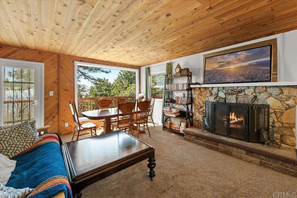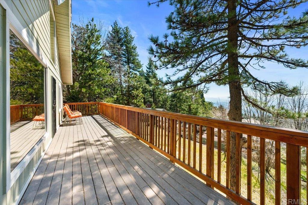 Located in the Lower Rowco neighborhood of Running Springs, this move-in ready mountain home offers breathtaking sunset and city views on a large fully fenced lot. The main level features an open living room with fireplace, kitchen, full bathroom, mudroom with laundry area, and two bedrooms. Upstairs is a loft-style bedroom with an additional half bath, creating flexible living space. French doors and large windows bring in natural light and showcase surrounding views. Enjoy outdoor living on the large deck ideal for relaxing or outdoor dining, surrounded by the peaceful mountain setting. Recent upgrades include freshly paved driveway, exterior paint with insulated siding, renovated deck with newer railing and stairs, replacement windows with lifetime warranty, updated electrical panel, EV charger, French drain system around the home and driveway, tankless water heater, backup generator, and mudroom with washer and dryer with insulated lines for year-round use. Mature apple tree add natural charm and usable outdoor space. Minutes to Snow Valley, Lake Arrowhead, and SkyPark at Santa’s Village - whether it’s skiing, hiking, or mountain biking, this is your year-round mountain basecamp.
