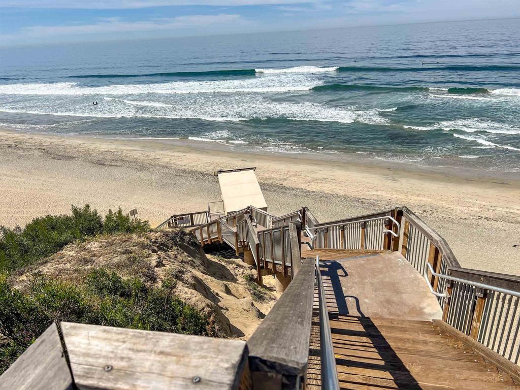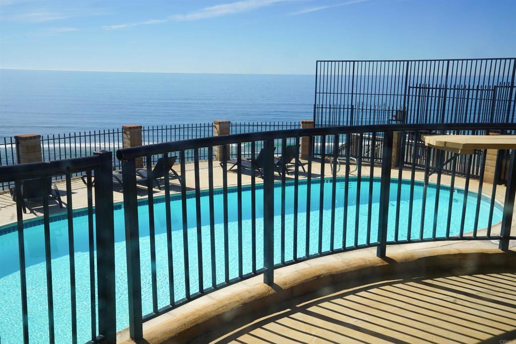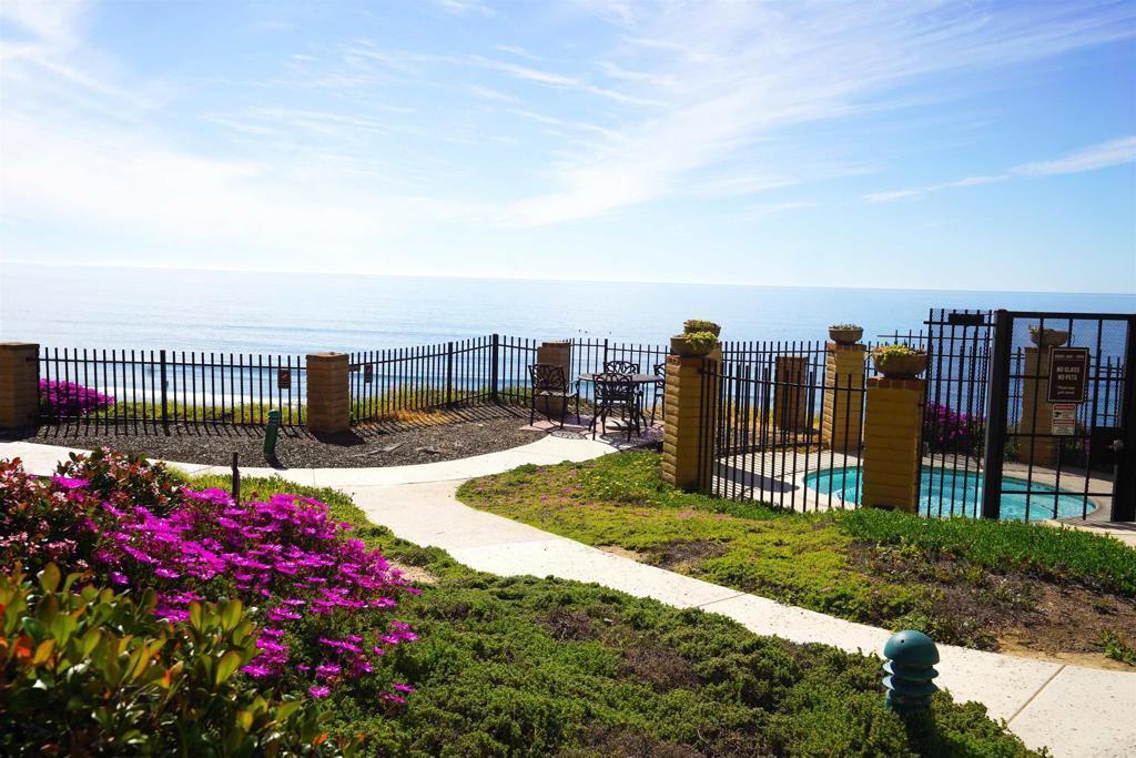 Enjoy coastal living in this beautifully updated top-floor 1-bedroom, 1-bath condominium located in the gated oceanfront community of Del Mar Shores Terrace in Solana Beach. Positioned above the coastline, the residence offers partial ocean views, refreshing sea breezes, and stunning sunset skies from the living area and private patio. The interior has been thoughtfully remodeled with a clean, modern design that enhances both style and functionality. The combination of warm wood tones and bright finishes creates an inviting atmosphere filled with abundant natural light and a seamless connection to the surrounding coastal setting. Del Mar Shores Terrace is a highly desirable blufftop community overlooking the Pacific Ocean and offers resort-style amenities including direct public beach access via private stairs, an ocean-view pool and spa, clubhouse, and beautifully landscaped grounds. The HOA currently allows short-term rentals, providing flexibility for personal enjoyment, vacation use, or investment potential. The home also includes one assigned parking space in a secure gated garage. Select luxury furnishings are included in the sale, offering added convenience and value. Included items feature a sectional sofa, chaise lounge, Arizona Leather sleeper sofa, area rugs, Apple TVs, bar stools, and outdoor patio table and chairs. Final list of included furnishings to be confirmed in the purchase agreement. Ideally located just steps from the sand and minutes from North County’s most popular destinations, including the Cedros Design District, Fletcher Cove Park, Solana Beach train station, Del Mar Fairgrounds and Racetrack, along with a wide variety of restaurants, cafés, boutiques, and nightlife. This is a rare opportunity to experience coastal convenience, ocean proximity, rental flexibility, and resort-style living in one of Solana Beach’s most sought-after beachfront communities.