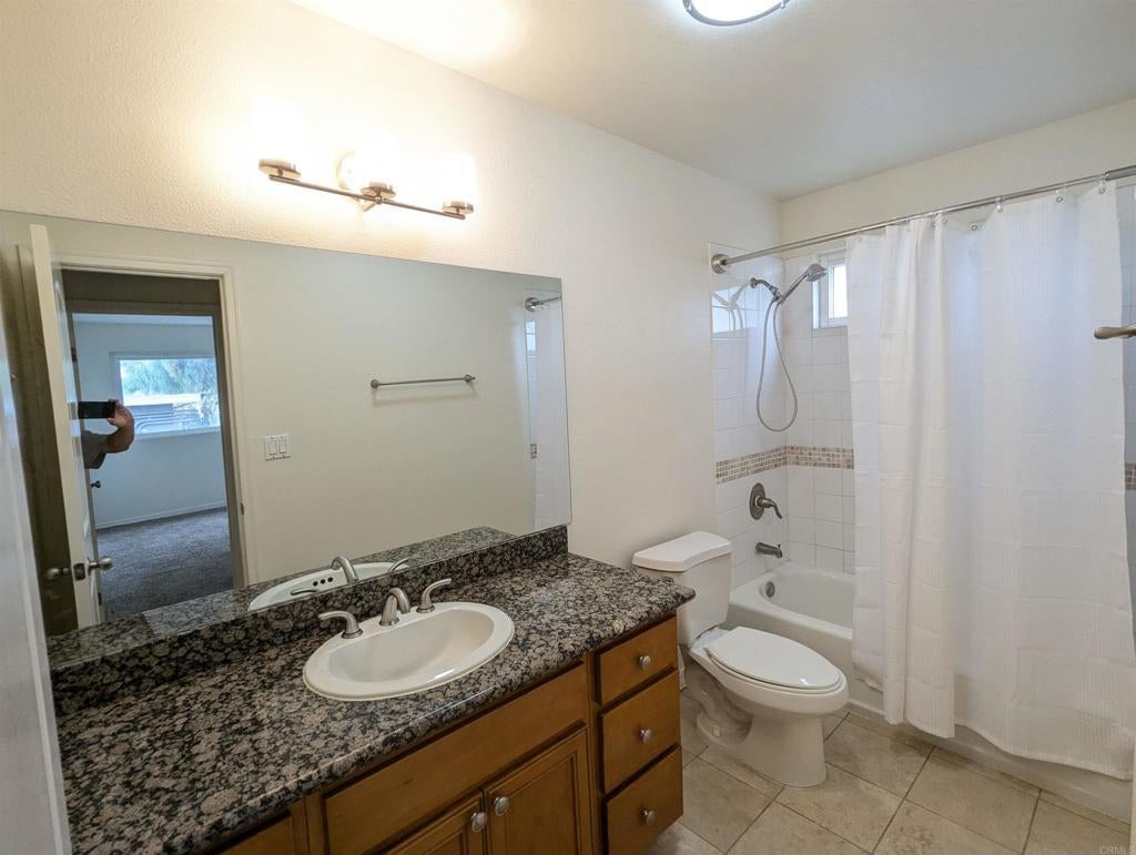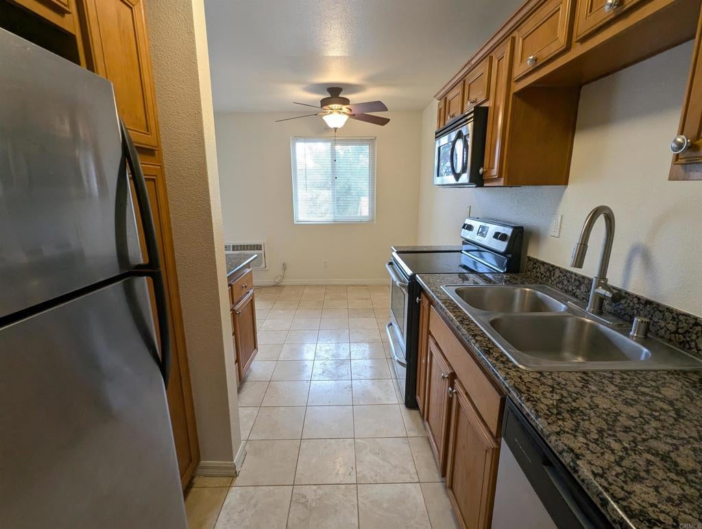 Stylish top floor corner location with large balcony in this desirable neighborhood. A modernized condominium with a very convenient location close to I-8 for commuting. Enjoy all the options with the nearby shops and restaurants. Remodeled and updated with granite counters, tile and carpet floors, dual pane windows, stainless appliances, in-unit washer and dryer, and more. Heating and cooling will keep you comfortable year round. Easy access to the pool, BBQ, and assigned parking space. Gated parking lot and building entrance. Low HOA dues compared to others. Must see!