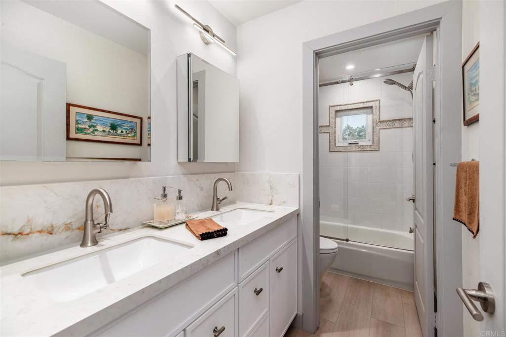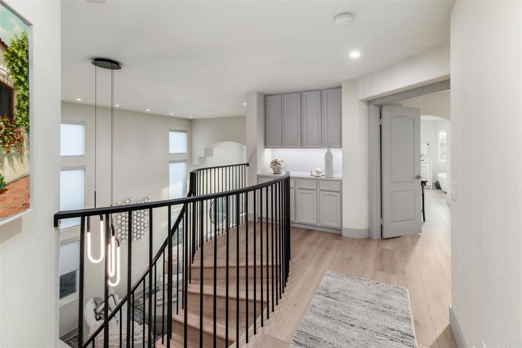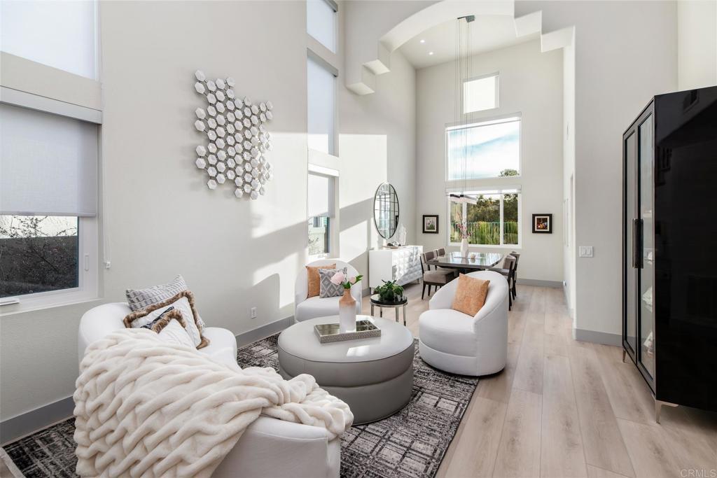 Rare Back view, southwest facing dream home in the prestigious gated neighborhood of The Fairways at La Costa. The property has only had two owners who both meticulously cared for this special home on the La Costa North Championship Golf Course. The house looks as though its' been lifted from the pages of Architectural Digest, with soaring two story cathedral ceilings and windows to match. The current owner/seller has extensively & professionally renovated with high-end design. The gorgeous new kitchen features "hidden" treasures everywhere; including pull out steps, thoughtful storage, walk-in pantry, SD Custom Cabinets with Neolith counter tops, Thermador Convection/Steam Oven, Wolf Induction Stove Top & warming drawer, Subzero 36" Designer Fridge, Fisher & Paykel Integrated Double D/W, Blanco double sink. The Neolith Island has a "pull out " counter with chairs & an inset debris shoot for easy chef clean up. The seller worked with her designer "hand in hand" to reimagine the kitchen. Each room has been redesigned with intention. 4 Bedrooms are up with 1 office/bedroom down; full bathroom in hallway is fully remodeled. The new twenty-seven Solar panels provided the seller with money back in 2025. Two Tesla Powerwalls & Electric Plug for level 2 car Charger are in the 3 car garage. The landscaping front & back is beautiful & easily managed. The newly installed covered patio is made of Extruded aluminum by Amerimax Exterior Home Products & is easy maintenance. The neighborhood setting includes small parks & is maintained by the HOA. Shopping, dining, and Ponto Beach are nearby. This house has it all; True indoor/outdoor California living. See the list of all improvements in documents under the photo section.