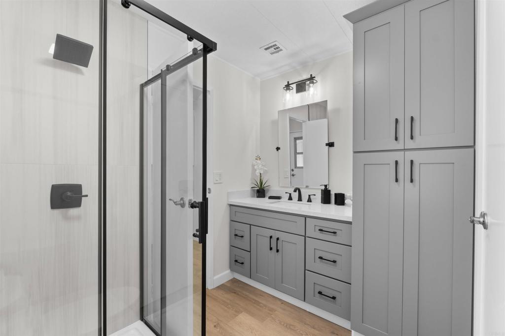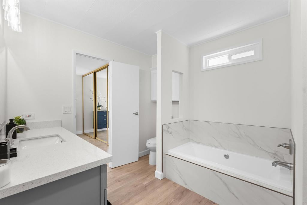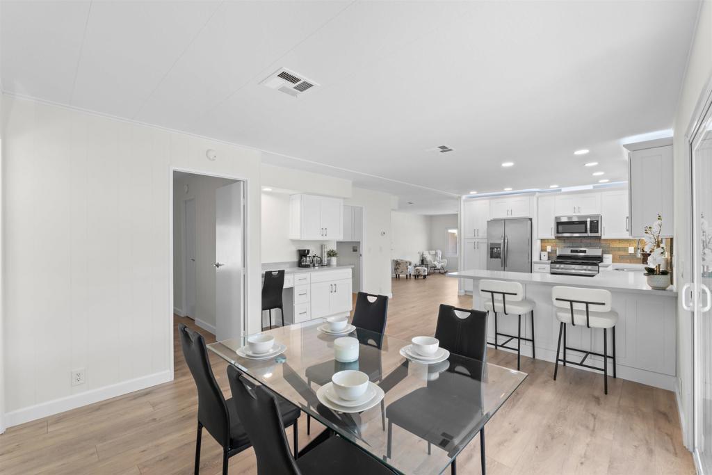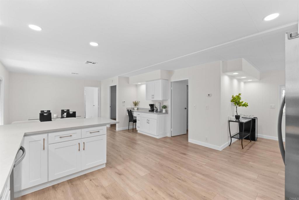 SELLER WILL PAY 6 MONTHS OF LEASE FEES WITH THE RIGHT OFFER! Welcome to this beautifully renovated home in the 55+ community of Sundance Mobile Home Park, where comfort, style, and easy living come together. From the moment you step inside, the open-concept design creates a warm and inviting space perfect for everyday living and entertaining. The heart of the home is the stunning kitchen, featuring quartz countertops, brand-new stainless-steel appliances, recessed lighting and plenty of cabinetry—ideal for everything from quiet mornings to hosting friends. The adjacent family room includes a built-in media desk and opens to a covered patio, perfect for indoor-outdoor living. The guest bathroom has been remodeled with new vanity, walk-in shower, linen storage, custom lighting and is accessible from the hall or guest bedroom. The spacious primary suite features a ceiling fan and ample closet space plus an en-suite bath with a tiled walk-in shower, separate tub, and new vanity. Additional upgrades include re-piped plumbing, new sump pump, new LVP flooring throughout, new energy-efficient windows, new return ducts for A/C, ventilated exhaust fans in both bathrooms, covered two-car parking, and a large storage shed—making this home truly move-in ready. Enjoy resort-style living with access to a clubhouse, heated pool and spa, fitness center, saunas, library, billiards, shuffleboard, and beautifully maintained greenbelts. Just minutes from the 15 freeway and ideally located near shopping, dining, and entertainment, this turn-key home offers the low-maintenance living you have been looking for!
