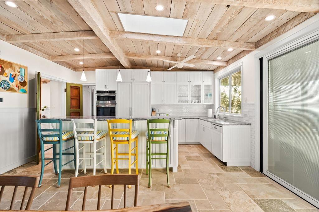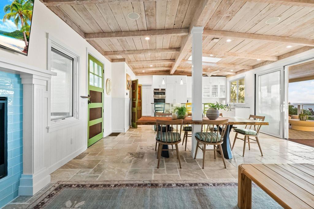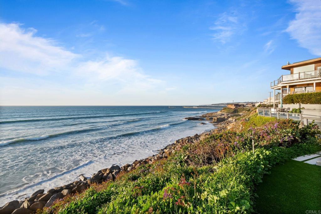 Perched directly on the bluff, this rare high-end oceanfront cottage offers a front-row seat to the Pacific. One of only 12 single-family homes positioned directly on the bluff in 92107, this dual-master residence has been meticulously customized with no expense spared. The main home features Italian stone flooring, granite counters, and reclaimed 1800s barn wood accents, all bathed in natural light through brand new Pella windows and doors, each equipped with a 10-year warranty for lasting quality and peace of mind. The chef's kitchen is outfitted with a brand new GE microwave and oven, alongside a Dacor gas stove, custom Miele dishwasher, custom Dacor refrigerator, and a U-Line wine cooler. Modern essentials include a Honeywell smart home alarm, WAP internet system, Sonos-ready speaker fittings, and a tankless water heater. The primary suites offer a spa-like experience with steam shower systems. This property is uniquely enhanced by a newly rebuilt, high-end usable structure that serves as a luxurious extension of the main home. Both the main residence and this additional usable space feature two separate central air and climate control systems, one dedicated to the main cottage and one for the additional usable space, ensuring year-round comfort throughout. This versatile space is anchored by a special-order Paralam beam and engineered with footings to support a second story. Inside, the space boasts porcelain floor planks, luxury shaker cabinets with floor-to-ceiling storage, and stone countertops with subway tile accents. High-end amenities include a full bathroom, separate laundry with washer/dryer, a refrigerator and Dacor appliances. Outside, enjoy a private outdoor shower and over 60 feet of ocean frontage, all just blocks from Ocean Beach's vibrant restaurants and the iconic Sunset Cliffs shoreline. Representing the epitome of a lock-and-leave waterfront investment, this property offers the ultimate blend of privacy, sophisticated smart-home living, and walkable coastal luxury.