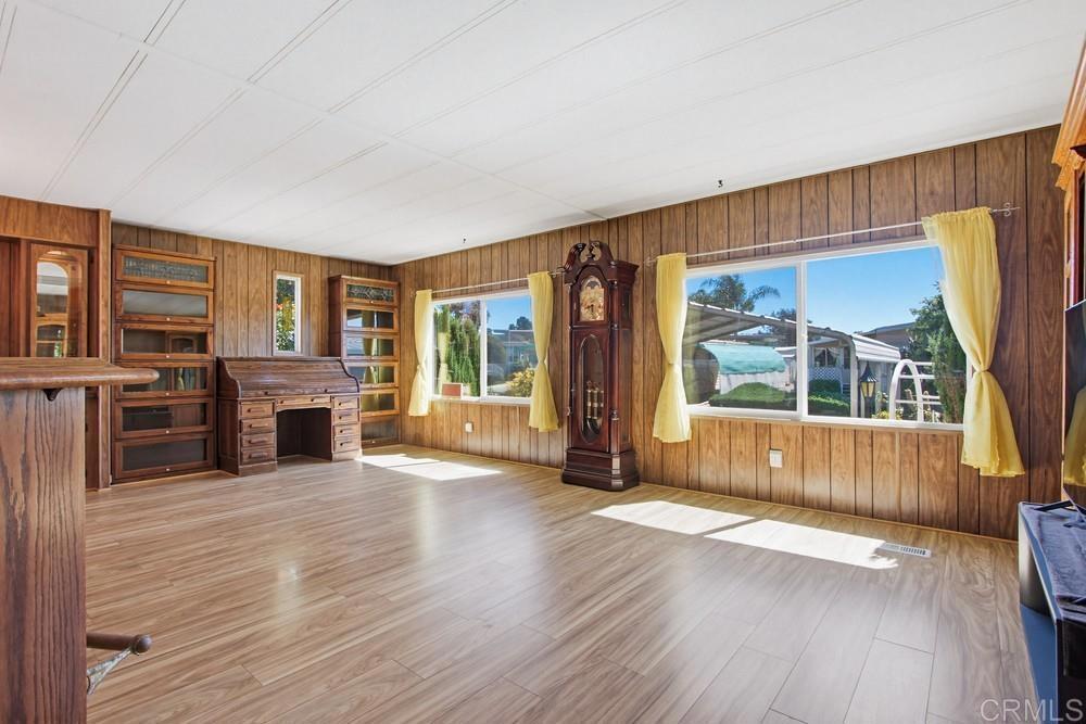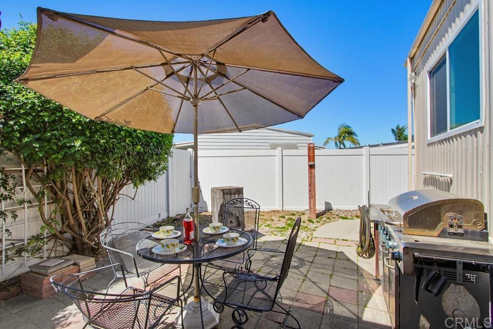 Charming, Spacious & Full of Opportunity! DUAL ENSUITE LAYOUT + 2-CAR SIDE-BY-SIDE PARKING. This charming double-wide manufactured home offers a great combination of space, functionality, and value. With approximately 56’ x 24’ of living space, the two-bedroom layout features dual ensuite bedrooms — ideal for privacy, guests, or shared living. Step inside to find a bright and inviting interior with a comfortable flow, an inside laundry room, a generously sized kitchen and an enclosed 8' x 19' patio room—perfect for a sunroom, hobby space, or casual entertaining. The primary suite includes a large soaking tub and separate shower, creating a relaxing retreat at the end of the day. Outside, enjoy a beautifully designed succulent front garden, a private side patio for outdoor lounging, and a spacious backyard with room for gardening plus a 9' x 9' storage shed. One of the standout features is the rare 2-car side-by-side covered parking—something you don’t often find. Built in 1977, this home may qualify for more favorable financing options, and being registered with the DMV instead of real property can offer annual savings. This is a fantastic opportunity to own a spacious home with great bones, unique features, and room to make it your own. Rent controlled land lease is $575/month, adjusted annually. Cash or Chattel loans only. Park features a clubhouse with activities, a nice pool area, tennis and pickleball courts, two clubhouses, pool and spa, convenient laundry facilities, boat/RV storage, billiard room, a nearby dog park and bike path to the beach. Close to shopping, dining, post office and coastal amenities. Buyer must qualify for park application process with a minimum of about $2,500 monthly income with good credit. Two small pets under 30 pounds allowed.
