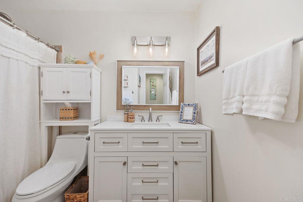 This Encinitas condo is the perfect blend of convenience and efficiency! Offering one bedroom, one bathroom, plus a second flex room with a built-in Murphy bed that functions as a guest room or home office space! Recently upgraded with luxury vinyl plank flooring, dual A/C mini splits, new patio fencing, new bathroom vanity, fresh interior paint, baseboards, moldings, ceiling fans, and an in-unit combo washer/dryer. Ideally located for quick access to downtown Encinitas shops and restaurants, world-class beaches, the Coaster Station, and the 5 Freeway. Other features include a newer front door, two large sliding doors to the private patio with café lights, a walk-in closet in the primary, and a stainless refrigerator. The Regal View community offers a pool, laundry rooms, dog park, two parking spaces, gated access, water, sewer and trash services, with HOA fees of $595/month. Furnishings are negotiable to make this your turn-key beach retreat!