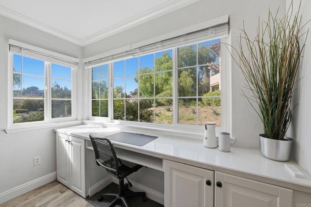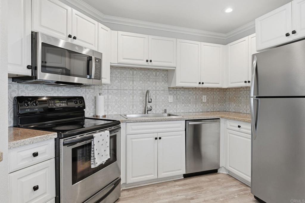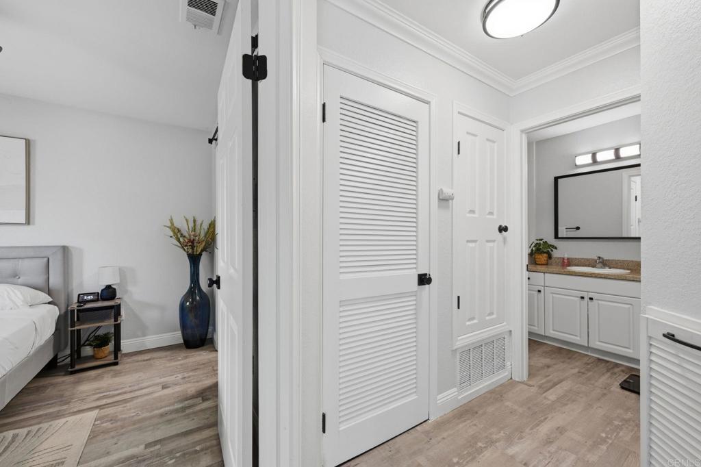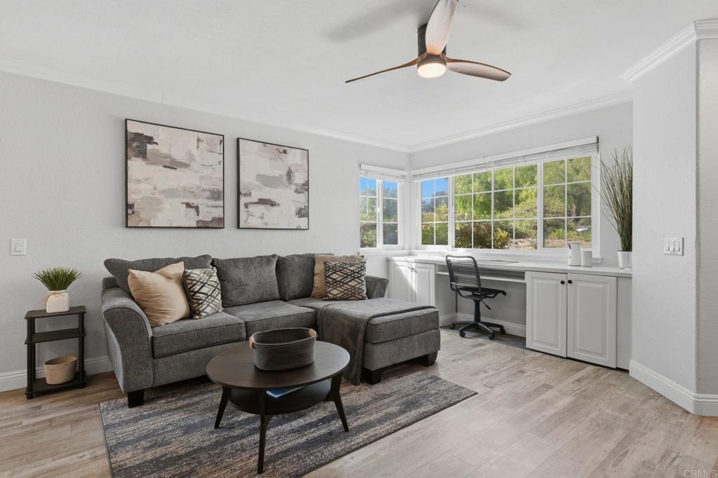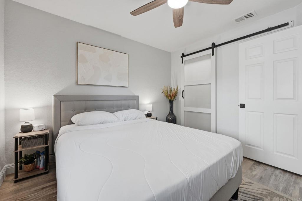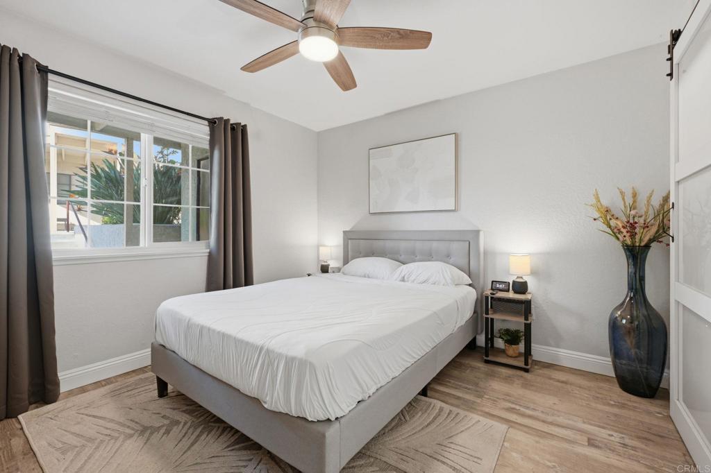 Welcome to Vista Way Village — a private gated enclave in the highly desirable Rancho del Oro area of Oceanside, where comfort, convenience, and coastal lifestyle come together beautifully.This rare single-level end-unit residence offers enhanced privacy, abundant natural light, and an inviting sense of serenity the moment you step inside. Thoughtfully upgraded throughout, the home features elegant vinyl flooring, custom cabinetry, granite countertops, stainless steel appliances, a pantry, and energy-efficient Milgard dual-pane windows. A stylish barn-door entry reveals a spacious walk-in closet with a built-in organizer, while new designer light fixtures and ceiling fans add a fresh, modern touch throughout. A private patio enhanced by decorative plank flooring for a very nice outdoor setting for coffee or even small garden. Additional highlights include a detached garage, assigned parking space, and plentiful storage for effortless everyday living. HOA dues include water, trash, and sewer, creating added simplicity and peace of mind. Residents enjoy access to resort-style amenities including two sparkling pools, a sauna, a clubhouse with a fitness area, a tennis court, scenic parks, greenbelts, walking trails, and a children’s play area — all within a welcoming, pet-friendly community.Ideally located approximately 3.5 miles from Oceanside’s iconic beaches and just minutes to Highway 78, shopping, dining, medical facilities, MiraCosta College, and neighboring Carlsbad, this cozy condo offers a refined balance of coastal charm, convenience, and lifestyle appeal.