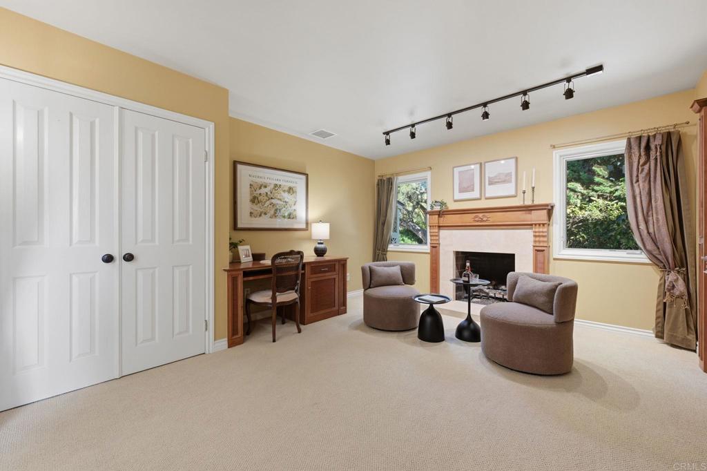 Charming single-story home with character, ideally positioned along a serene greenbelt. The kitchen offers custom cabinetry and a functional, well-designed layout with timeless appeal. Major system upgrades, including the roof, HVAC, and plumbing, have already been completed, adding confidence and long-term value. The third bedroom is currently configured as a home office featuring a fireplace, built-in shelving, and desk, creating a comfortable and inspiring workspace. A sun-filled bonus room with expansive windows brings in abundant natural light and captures peaceful greenbelt views. The backyard is beautifully maintained, offering a private, park-like setting with a European garden feel, perfect for relaxing or entertaining. The oversized one-car garage provides excellent storage and comfortably fits a vehicle along with additional space for a golf cart or hobbies.