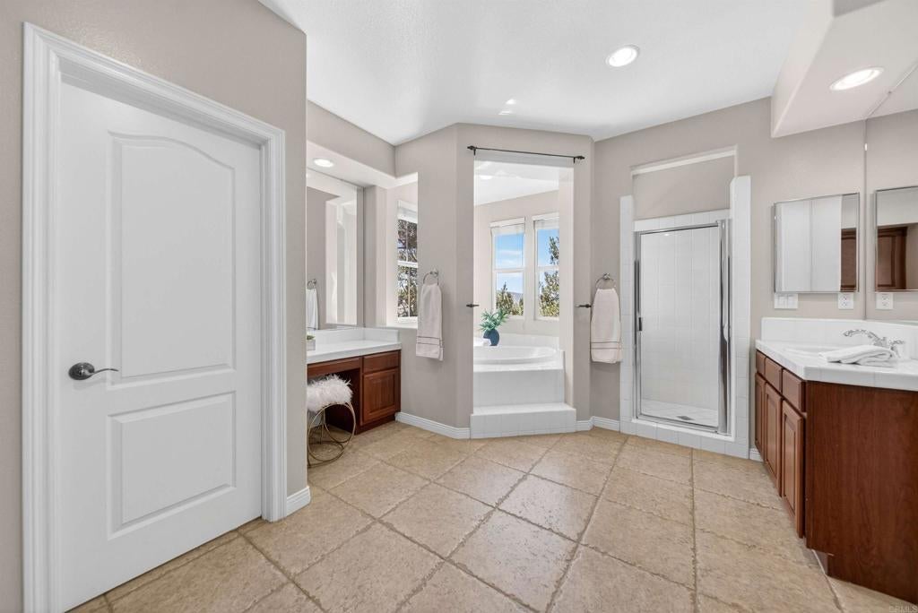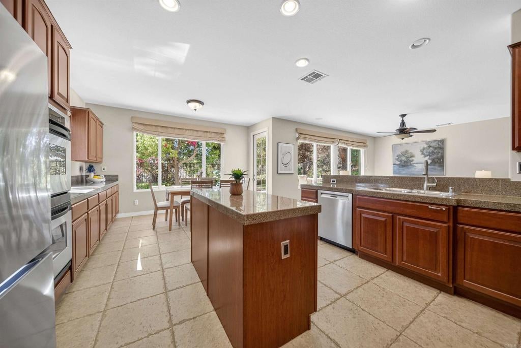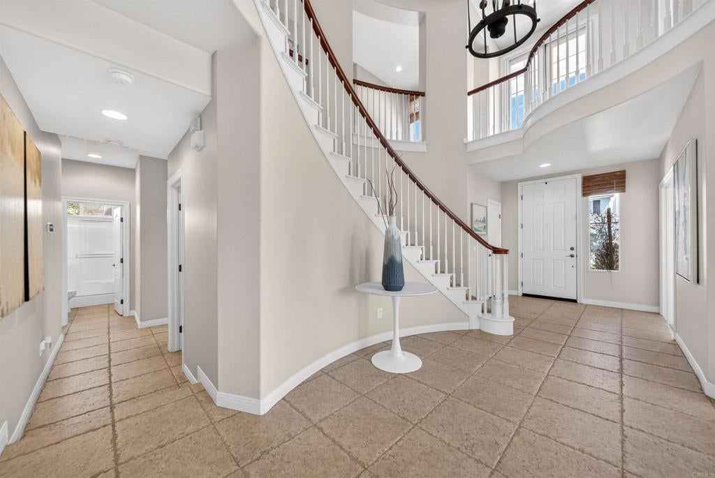 Beautifully nestled in San Elijo Hills on a 1/4 acre corner lot in the gated community of Promontory Ridge, this home features fresh exterior paint that creates gorgeous curb appeal and a memorable first impression. Step inside to a sweeping spiral staircase entry that creates a grand focal point and welcoming introduction to the home. The thoughtfully designed layout includes formal living and dining rooms, a chef’s kitchen that opens to the spacious family room and tranquil backyard, and a convenient entry-level bedroom with full bathroom. Upstairs offers two additional bedrooms, an office that could easily be converted into another bedroom, and an expansive primary suite featuring a flexible bonus retreat space, spa-like bathroom, and walk-in closet with built-in organizers. The backyard extends along the side of the home, creating an expansive outdoor area with plenty of room for entertaining, play, or future possibilities for building a pool or custom outdoor retreat. Enjoy close proximity to parks, trails, and the vibrant San Elijo Hills Town Square, all while being zoned for San Elijo Elementary, San Elijo Middle, and San Marcos High School.