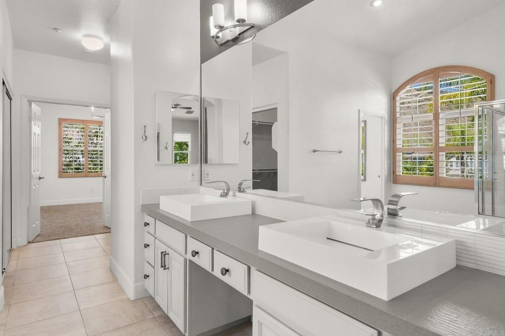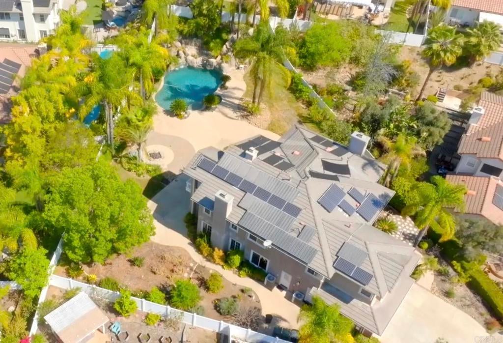 Welcome to Rancho San Pasqual, one of North County San Diego’s most sought-after gated communities, nestled in the scenic foothills of Escondido and surrounding the beautiful Dos Osos Golf Course. This exceptional 5 bedroom, 4 bathroom home offers 3,444 square feet of thoughtfully designed living space on a large, private lot at the end of a quiet cul-de-sac. Step inside to soaring 19 foot ceilings in the living room, where natural light pours in and a cozy fireplace creates an inviting space to relax or entertain. The spacious, well-appointed kitchen has a roomy walk-in pantry and space for a large dining table. The adjacent, open-concept great room features a fireplace and flows seamlessly into the backyard oasis, perfect for indoor-outdoor living. A full bedroom and bathroom on the main floor provide ideal flexibility for guests or multigenerational living. Upstairs, you’ll find 4 spacious bedrooms, including a luxurious primary suite complete with its own fireplace, private balcony overlooking the pool and firepit, a spa-like bathroom with soaking tub, and a retreat space ideal for a home office or lounge. One secondary bedroom features its own ensuite bath, offering a second primary suite option, while two additional bedrooms share a well-appointed bathroom. The backyard is truly a showstopper, designed for both relaxation and entertaining, with a sparkling pool and spa featuring a waterfall and a lawn, fruit trees, and a built-in firepit area for gathering under the stars. Additional highlights include 40 paid-for solar panels for energy efficiency and a 3-car attached garage. Residents of Rancho San Pasqual enjoy access to exceptional community amenities, including a large pool, sport court, playground, and picnic area, all within a secure gated setting. HOA dues are $215 per month. Enjoy the perfect blend of privacy, luxury, and community in this premier location, just minutes from hiking trails and easy access to I-15 for commuting or coastal escapes. The highly regarded K-8 San Pasqual Union school is just outside the community gates.
