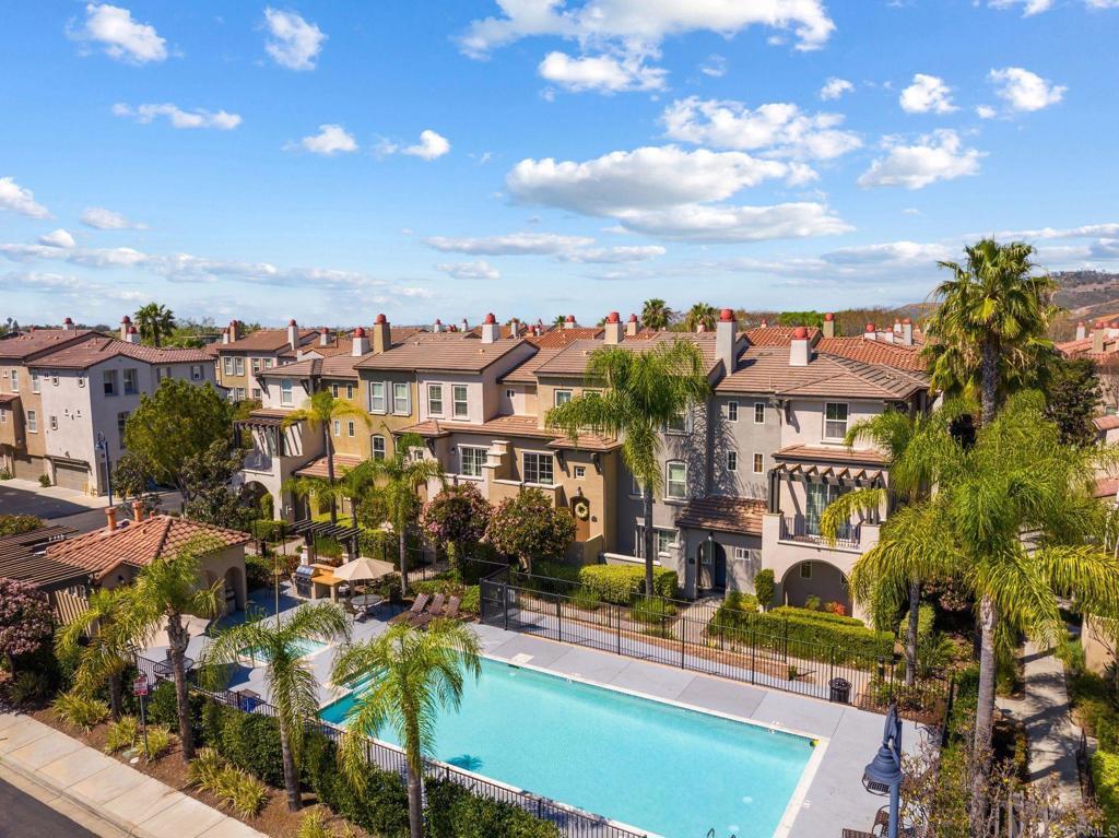 This beautiful home is located in the highly sought after San Moritz community of 4S Ranch which is one of North County’s most desirable neighborhoods. With views overlooking the sparkling pool and courtyard, the setting feels both private and connected. The entry level features a bedroom and full bath—ideal for guests, a home office, or multigenerational living. Upstairs, the main living area is bright and open, with a fireplace warmed living room that flows seamlessly into the dining area and large kitchen complete with a center island that has breakfast bar seating, stainless steel appliances, ample cabinetry and large pantry. A private balcony extends the living space and creates a natural indoor-outdoor flow. The top floor is anchored by the spacious primary suite, offering an oversized walk-in closet, dual sinks, large windows that bring in natural light, and a versatile alcove perfect for a nursery, office, or additional retreat space. Living in 4S Ranch means more than just a home - it’s a lifestyle. Residents enjoy access to top-rated Poway Unified schools, multiple parks, approximately 10 miles of scenic trails, and about 1,600 acres of thoughtfully designed open spaces designated as a wildlife habitat. The nearby 4S Commons Town Center offers convenient shopping, dining, and everyday essentials, while community amenities like the Splash Pad at Pioneer Park, sports fields, the public library, Boys and Girls Club and neighborhood events make this a truly vibrant place to call home.