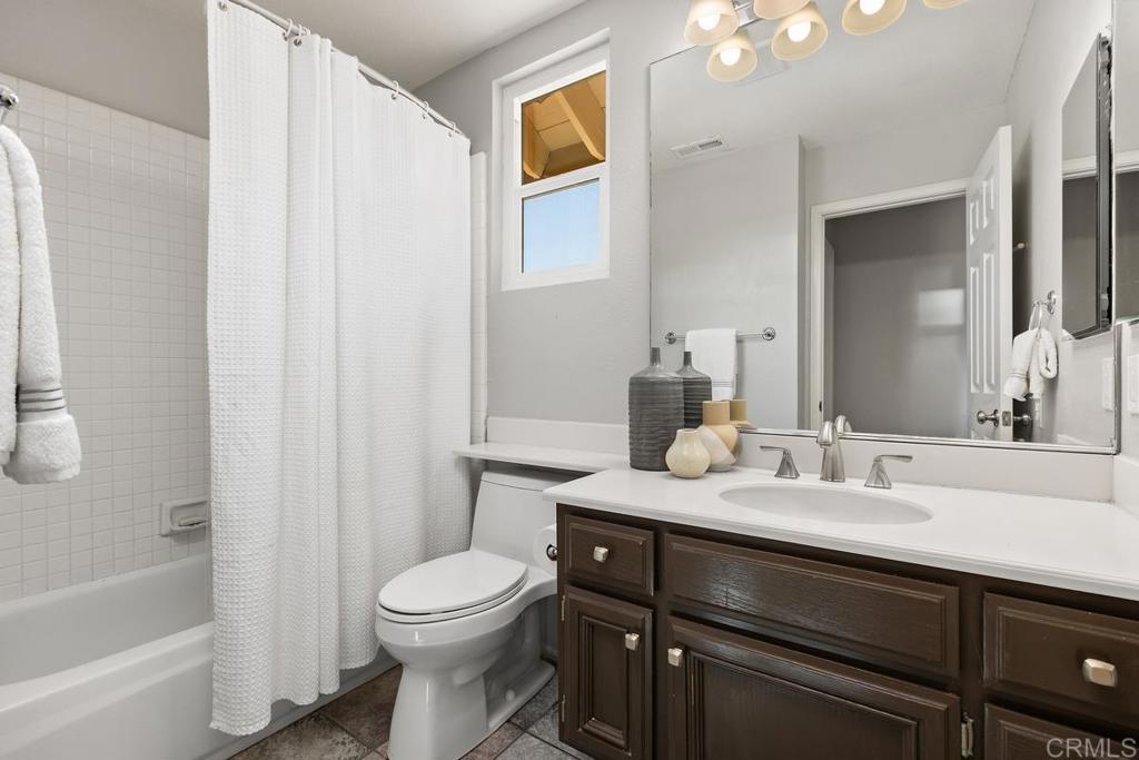 Welcome to this elegantly updated Rancho Penasquitos residence showcasing 4 bedrooms, 3 baths, and 2,562 sq ft of refined living. The home features vaulted ceilings, abundant natural light, and a seamless layout anchored by a fully remodeled chef’s kitchen with stylish finishes and exceptional functionality. A full bedroom and bath on the main level provide outstanding flexibility. Upstairs, the primary suite offers serene territorial views and a beautifully updated bath retreat. Primary bathroom has been completely remodeled, elevating the home’s comfort and aesthetic. Beautiful elevated views from the backyard patio—open, peaceful, and perfect for outdoor living. Set on a 6,490 sq ft lot with a 3 car garage, this home sits in a quiet enclave with a low monthly HOA and access to award winning Poway Unified schools.