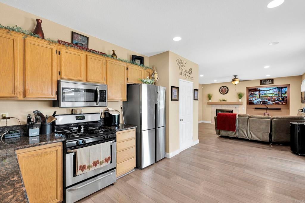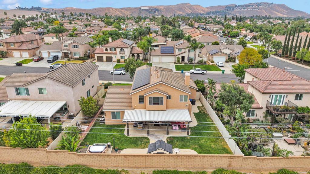 Welcome to 17866 Robusta, located in the highly sought-after gated community of Victoria Grove, where comfort, space, and lifestyle come together. This beautifully updated home offers a rare six-bedroom floor plan, perfect for growing families or multi-generational living. A convenient downstairs bedroom and full bathroom provide flexibility for guests or extended family. Inside, you’ll find a bright and open layout designed for both everyday living and entertaining, featuring new flooring throughout, including stylish wood-look tile, laminate, and plush new carpet in the bedrooms. Upstairs, a spacious loft creates the perfect bonus area for a media room, home office, or play space. The primary suite is a true retreat, complete with a large walk-in closet and an ensuite bathroom featuring dual vanities, a soaking tub, and a separate shower. Step outside to your private backyard oasis, where you can relax in the jacuzzi and enjoy a variety of fruit trees currently bearing fruit, including Asian pear, apple, guava, peach, and nectarine. It’s the perfect setting for outdoor gatherings or quiet evenings at home. The three-car garage offers ample space, including additional storage for all your needs. Living in Victoria Grove means enjoying resort-style amenities, including a community pool and spa, beautifully maintained grounds, and scenic surroundings. The neighborhood also boasts stunning views overlooking Lake Matthews and access to top-rated schools, including one of the highest-rated elementary schools in Riverside County. An added bonus: the home is equipped with solar that will be paid off at the close of escrow, offering energy efficiency and long-term savings for the next owner. This is more than just a home, it’s a lifestyle