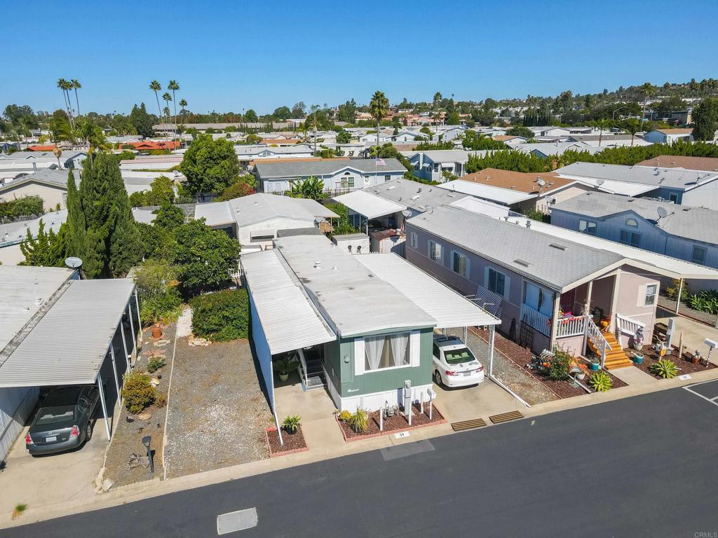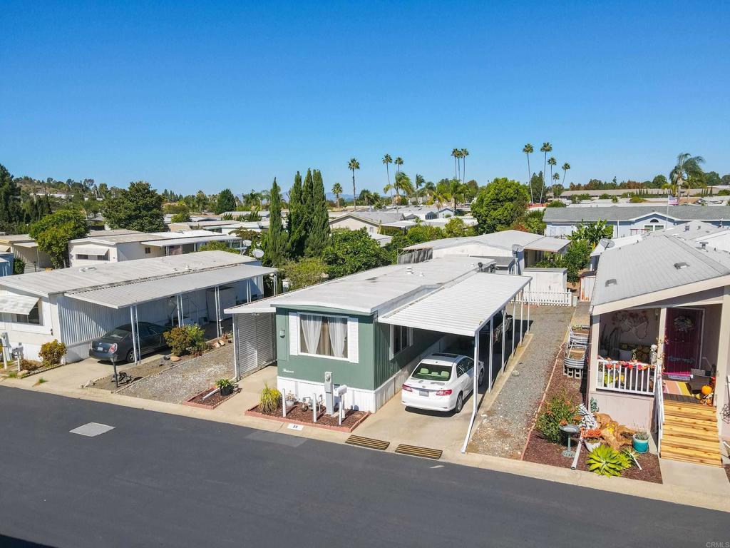 Cozy little home!! Perfect for those looking to down size or for an affordable home. Home recently painted inside and out. Great location. Well maintained park with many amenities. The exterior boasts a low maintenance yard with several fruit trees, private covered porch, and storage shed. Vista Royalodge is a 55+ park that allows second resident to be age 45+. 2 small pets okay with management approval. Monthly space rent is $1,021.25. Walking distance to Sprouts, Albertsons, Rite Aid, dining & shopping, near Downtown Vista; breweries, movie theater, transportation, Moonlight Amphitheater & a short drive to beaches! Call and schedule your private showing.