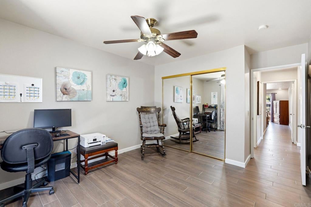 Welcome to 1106 Corral Glen — a charming single-level twinhome nestled at the edge of the community offering a quaint, park-like setting in the desirable Rock Springs community of Escondido. This thoughtfully designed home offers a bright, open floor plan with seamless indoor-outdoor living. Sliding glass doors invite natural light throughout and provide direct access to private outdoor spaces, including a fully fenced backyard — perfect for relaxing, entertaining, or enjoying San Diego’s year-round sunshine. The spacious kitchen features ample counter space and abundant cabinetry, making it both functional and inviting for everyday living. The primary suite includes an ensuite bath and generous closet space, while a secondary bedroom offers flexibility for guests, an office, or additional living needs. Additional highlights include a full two-car garage, low-maintenance landscaping, and a quiet cul-de-sac location — a true hidden gem. Conveniently located just minutes from freeways, shopping, dining. This home offers the perfect balance of tranquility and accessibility. A rare opportunity to own a well-maintained, single-level home in one of North County’s most desirable and centrally located communities. Plenty of parking for guests!