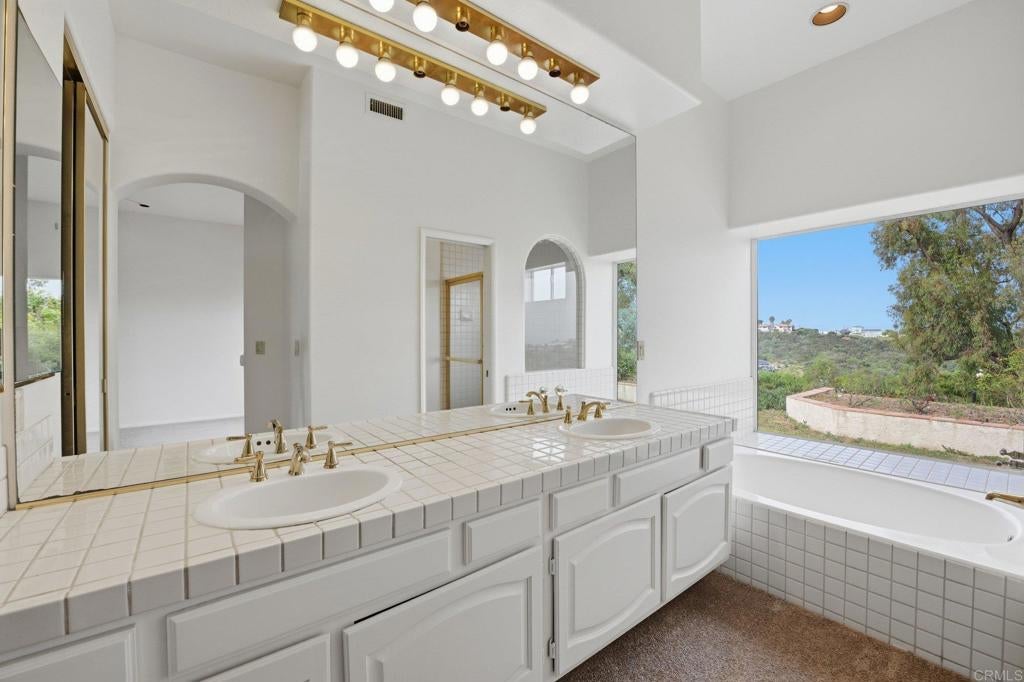 Incredible opportunity in the desirable Capri neighborhood in Carlsbad! Single level, 4 bedrooms / 2.5 bathrooms, ocean view, dual-sided fireplace in living/family room, fireplace in primary bedroom, spacious front and back yards, and a three-car garage. Fresh paint and new carpet throughout, but this home does need further improvements.