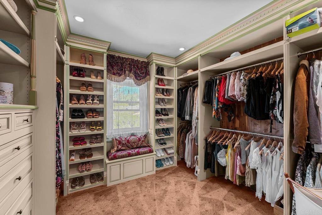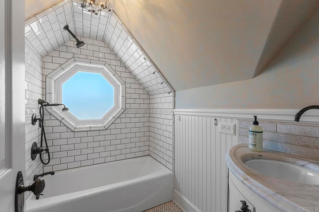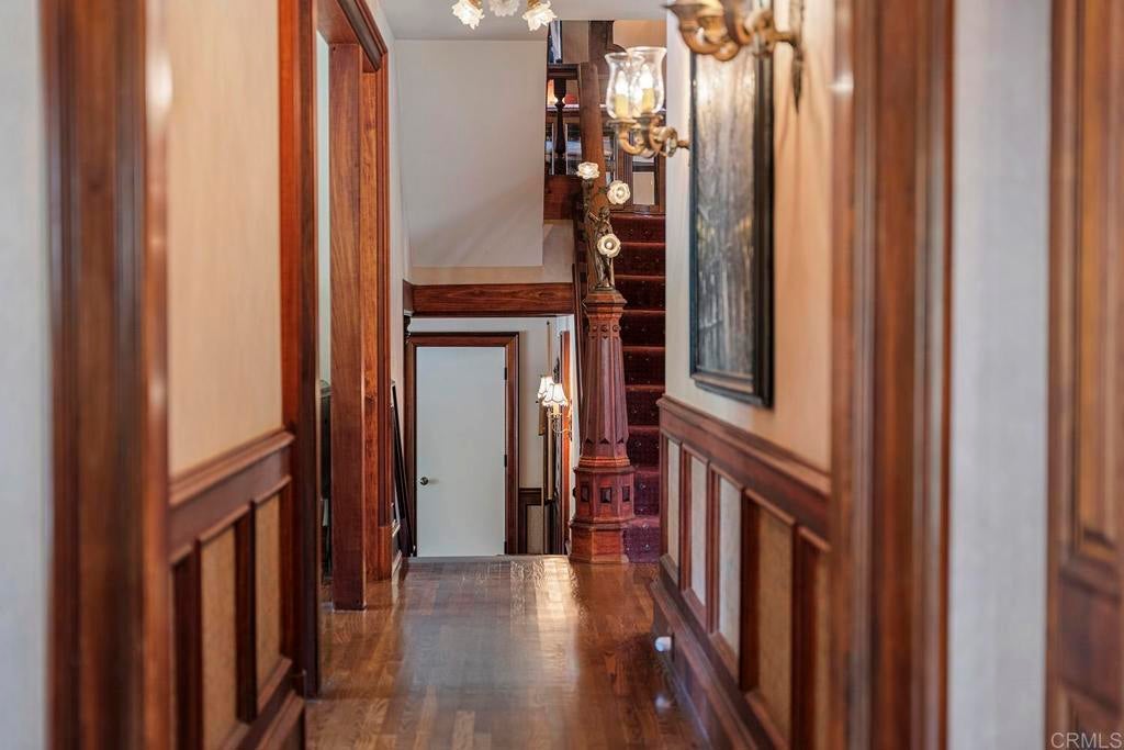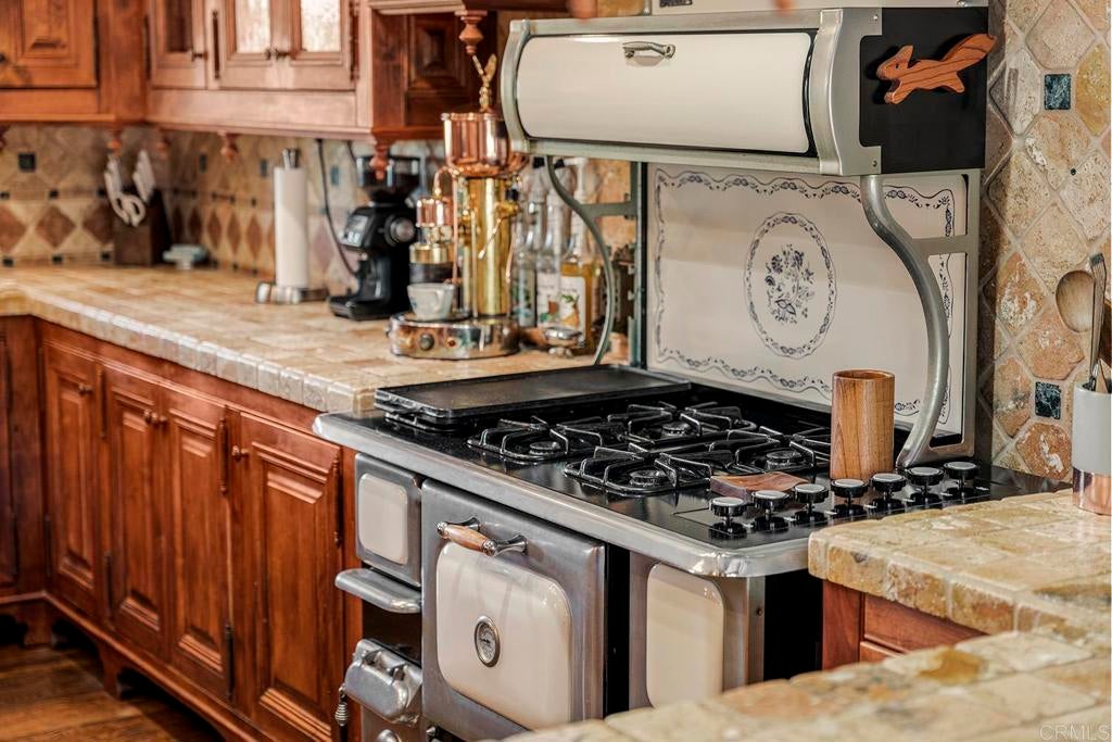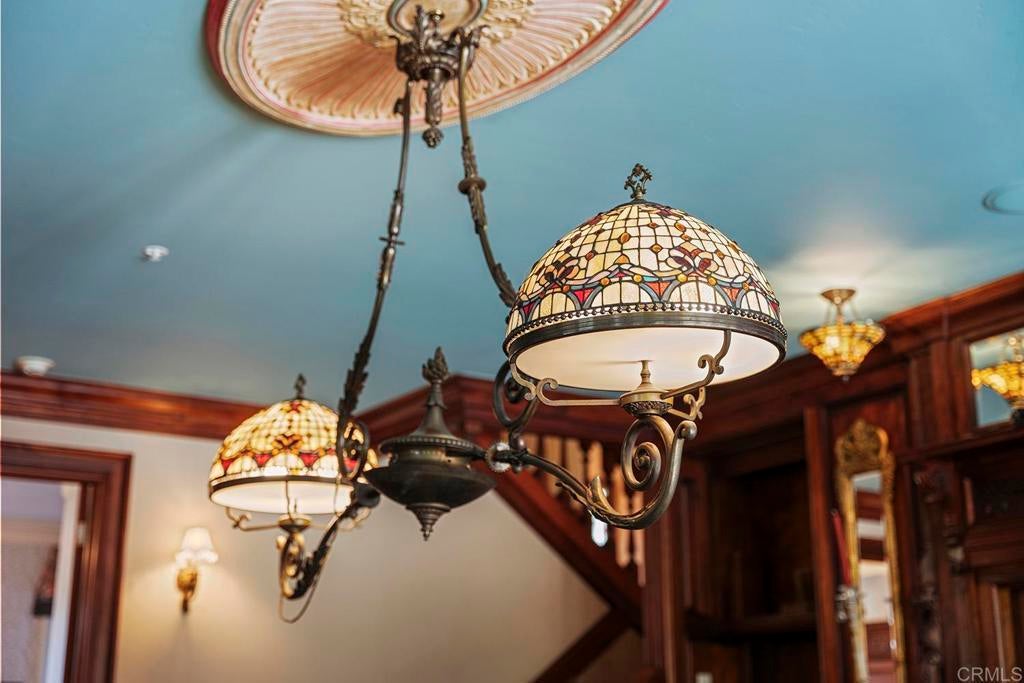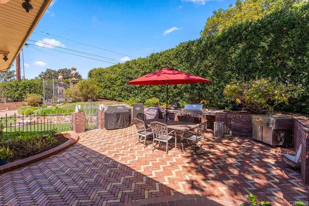 Looking for a quiet respite? This one-of-a-kind Queen Anne Victorian estate blends timeless architecture with modern comfort on over an acre of private, usable land in Vista’s desirable Warmlands. Custom-built by a Rancho Santa Fe master builder, the home showcases exceptional craftsmanship and attention to detail throughout. It features four ensuite bedrooms, each on its own level, with sitting areas, walk-in closets, and private baths. Three bedrooms offer private balconies overlooking the grounds, while the expansive primary suite includes a study, dressing room, spa-like bath, and distinctive architectural elements such as a turret, leaded glass windows, and a classic Victorian sleeping porch. From the 160-year-old iron entry gates to the hand-cut slate roof and hand-laid brick driveway, the property is rich with character. Antique lighting and hardware sourced from an 1850s Chicago hotel further enhance its authenticity. The main living spaces are both inviting and functional, offering a formal parlor, a billiards room with wet bar and fireplace, and kitchen featuring vintage-style appliances, a Sub-Zero built-in refrigerator, and French doors that open to the veranda. Designed for seamless indoor-outdoor living, the wrap-around covered veranda provides multiple seating areas, built-in speakers, and peaceful views of the surrounding landscape. The grounds include a mosaic-tiled saltwater pool and spa finished with beautiful sparkling Colorado Silverstone, a gazebo with fire pit, built-in BBQ, lush gardens, and a variety of mature fruit trees. A seasonal creek bed along the rear of the property enhances privacy, with open space and agricultural land beyond. Additional features include fully owned solar with battery backup and a Tesla charger. The lower portion of the property offers space for a future guest house or ADU, workshop, or sport court. Ideally located with convenient access to the 76 Freeway, this exceptional estate offers a rare combination of privacy, craftsmanship, and storybook charm.